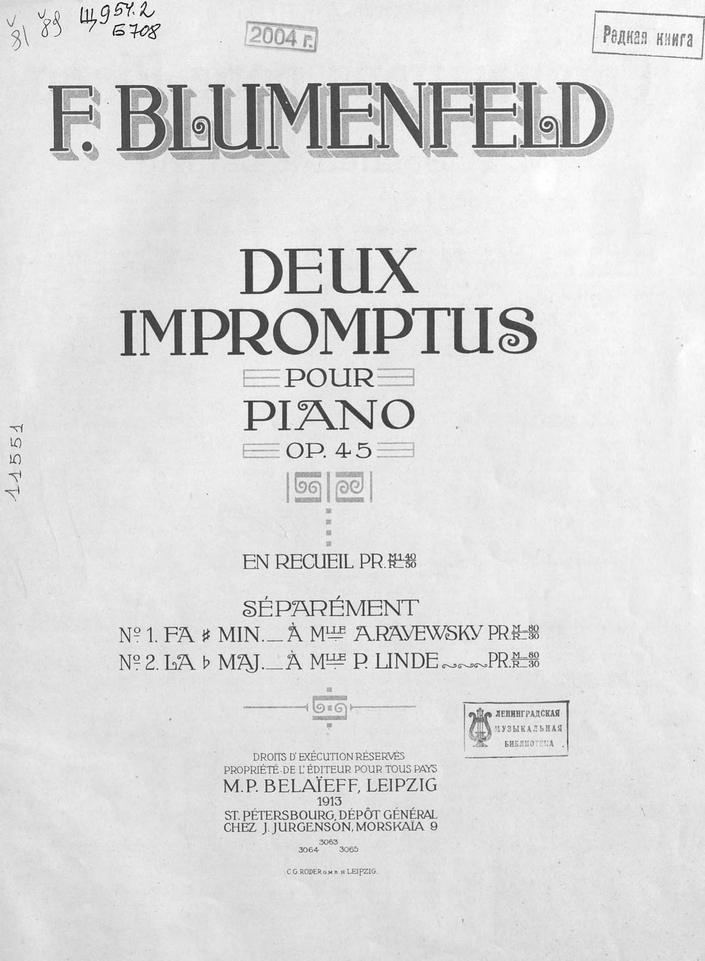 Перешедшие в общественное достояние материалы электронного фонда ЦГПБ им. В.В. Маяковского. Сведения о издательстве или типографии: изд. М. Беляева. Место издания: Лейпциг