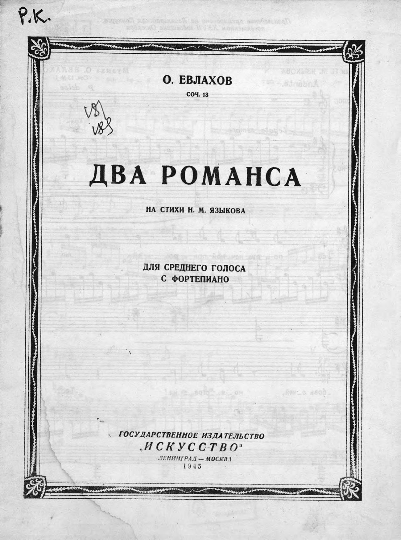 Два романса на стихи Н. М. Языкова