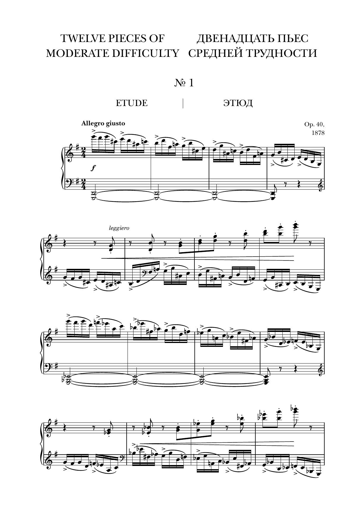 Работать над циклом "Двенадцать пьес средней трудности" Чайковский начал в феврале 1878 года во время своего проживания во Флоренции. В него вошли пьесы традиционных жанров бытового музицирования (вальс, мазурка, этюд, скерцо) и романтического жанра песни без слов. Опус имеет посвящение брату Чайковского Модесту Ильичу, который поддерживал и разделял с композитором все тяготы этого периода.