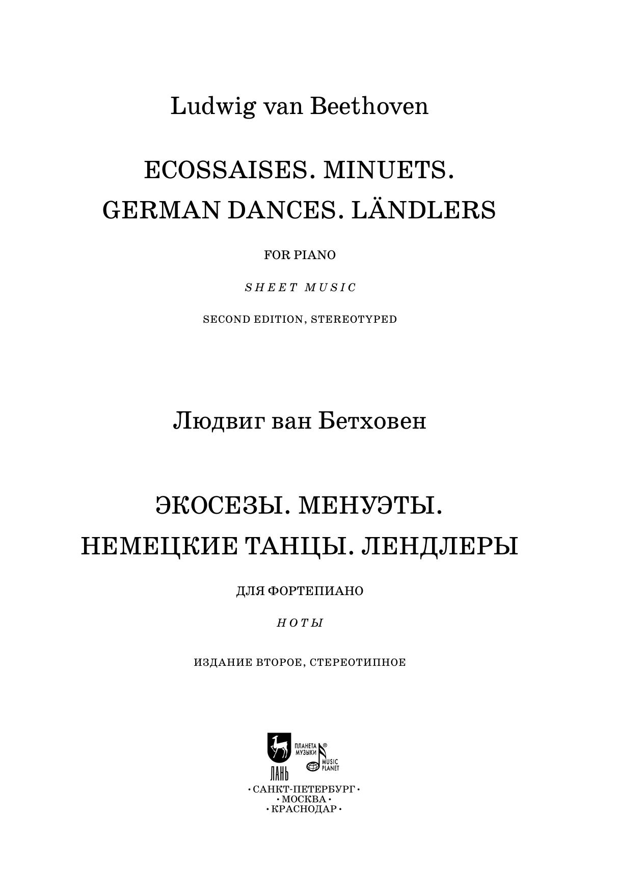 Экосезы. Менуэты. Немецкие танцы. Лендлеры. Для фортепиано Бетховен Л.