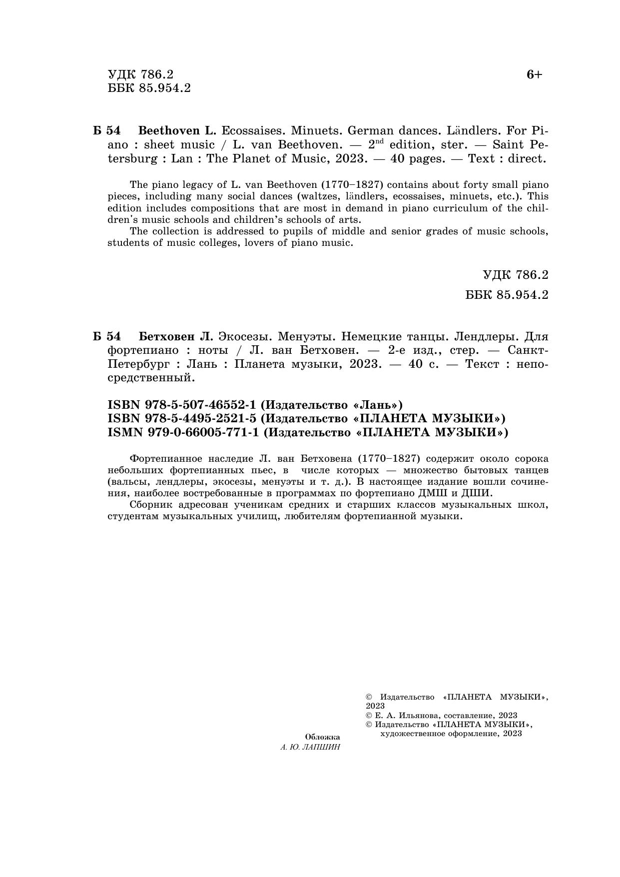Фортепианное наследие Л. ван Бетховена (1770–1827) содержит около сорока небольших фортепианных пьес, в числе которых – множество бытовых танцев (вальсы, лендлеры, экосезы, менуэты и т. д.). В настоящее издание вошли сочинения, наиболее востребованные в программах по фортепиано ДМШ и ДШИ.