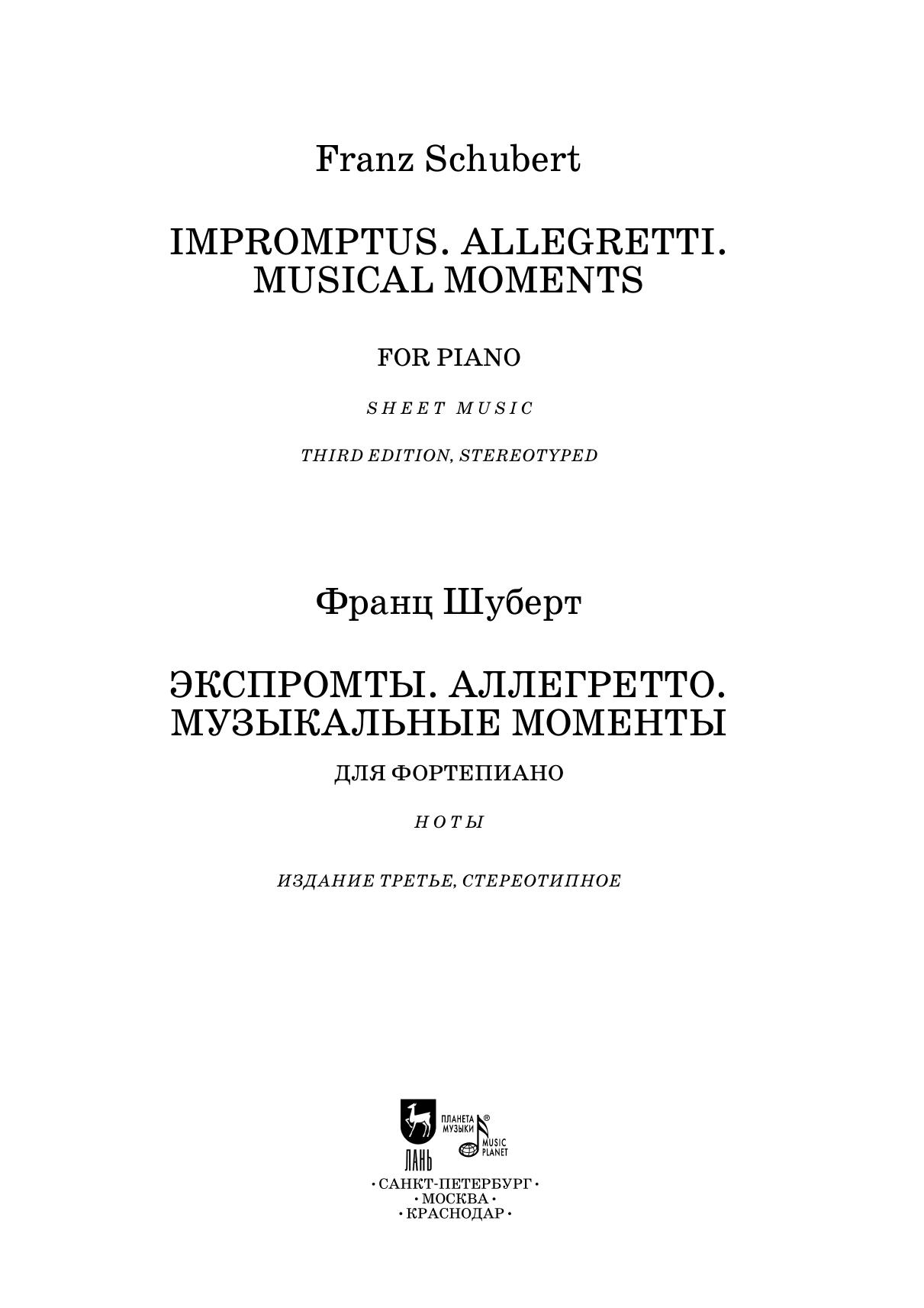 Экспромты. Аллегретто. Музыкальные моменты. Для фортепиано