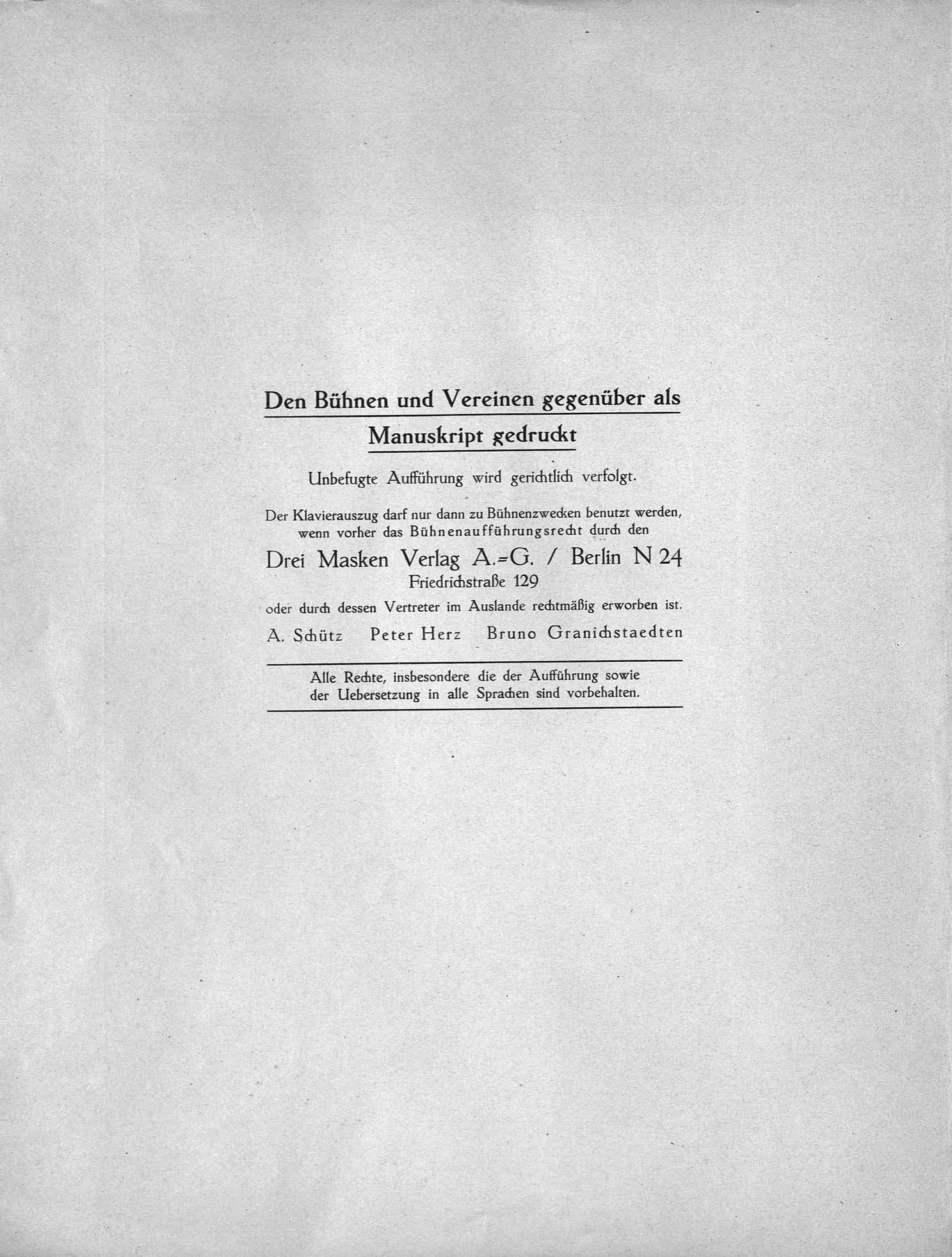 Перешедшие в общественное достояние материалы электронного фонда ЦГПБ им. В.В. Маяковского. Сведения о издательстве или типографии: Drei Masken-Verlag A.-G.. Место издания: Берлин