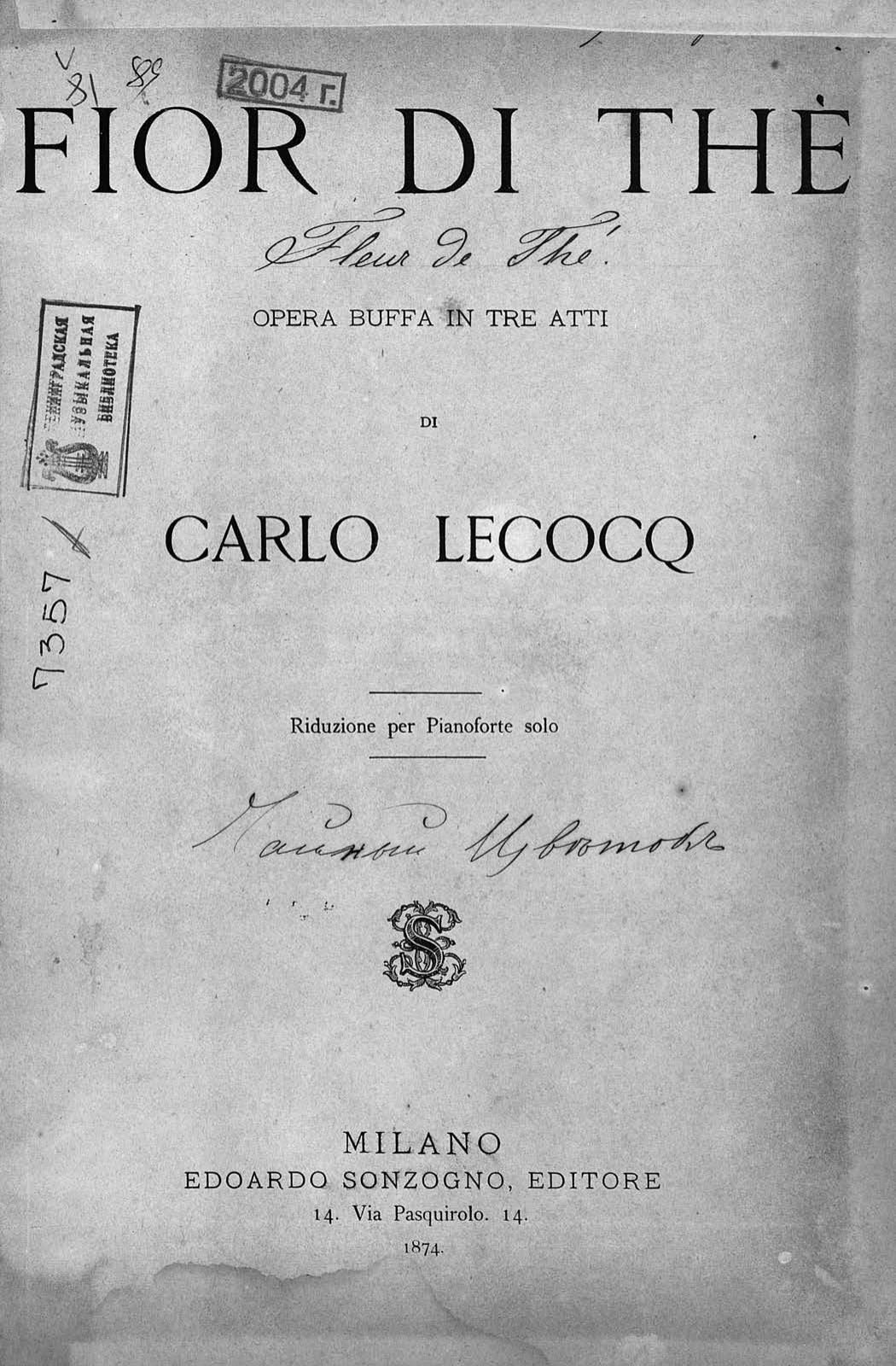 Перешедшие в общественное достояние материалы электронного фонда ЦГПБ им. В.В. Маяковского. Сведения о издательстве или типографии: Ed. Sonzogno. Место издания: Милан