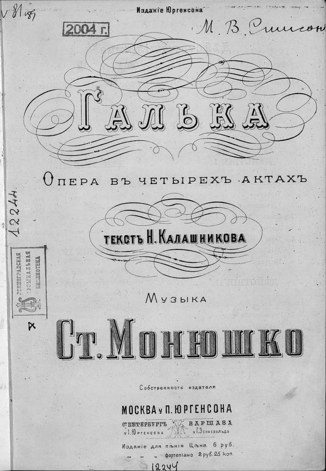 Перешедшие в общественное достояние материалы электронного фонда ЦГПБ им. В.В. Маяковского. Сведения о издательстве или типографии: П. Юргенсон. Место издания: Москва