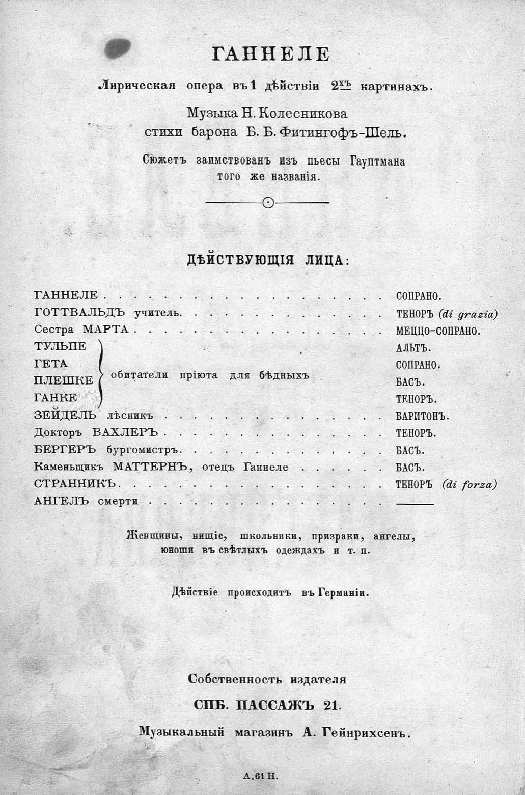 Перешедшие в общественное достояние материалы электронного фонда ЦГПБ им. В.В. Маяковского. Сведения о издательстве или типографии: изд. А. Гейнрихсен. Место издания: Санкт-Петербург