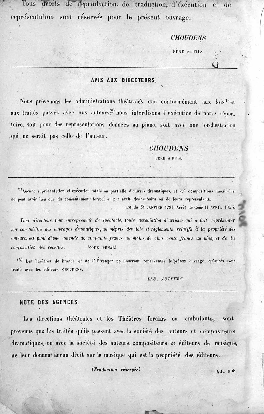 Перешедшие в общественное достояние материалы электронного фонда ЦГПБ им. В.В. Маяковского. Сведения о издательстве или типографии: Choudens (ранее Choudens P?re et Fils). Место издания: Париж
