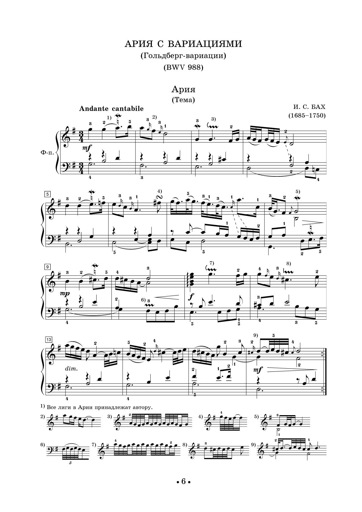 Гольдберг-вариации (Ария с различными вариациями). Редакция Л. И. Ройзмана