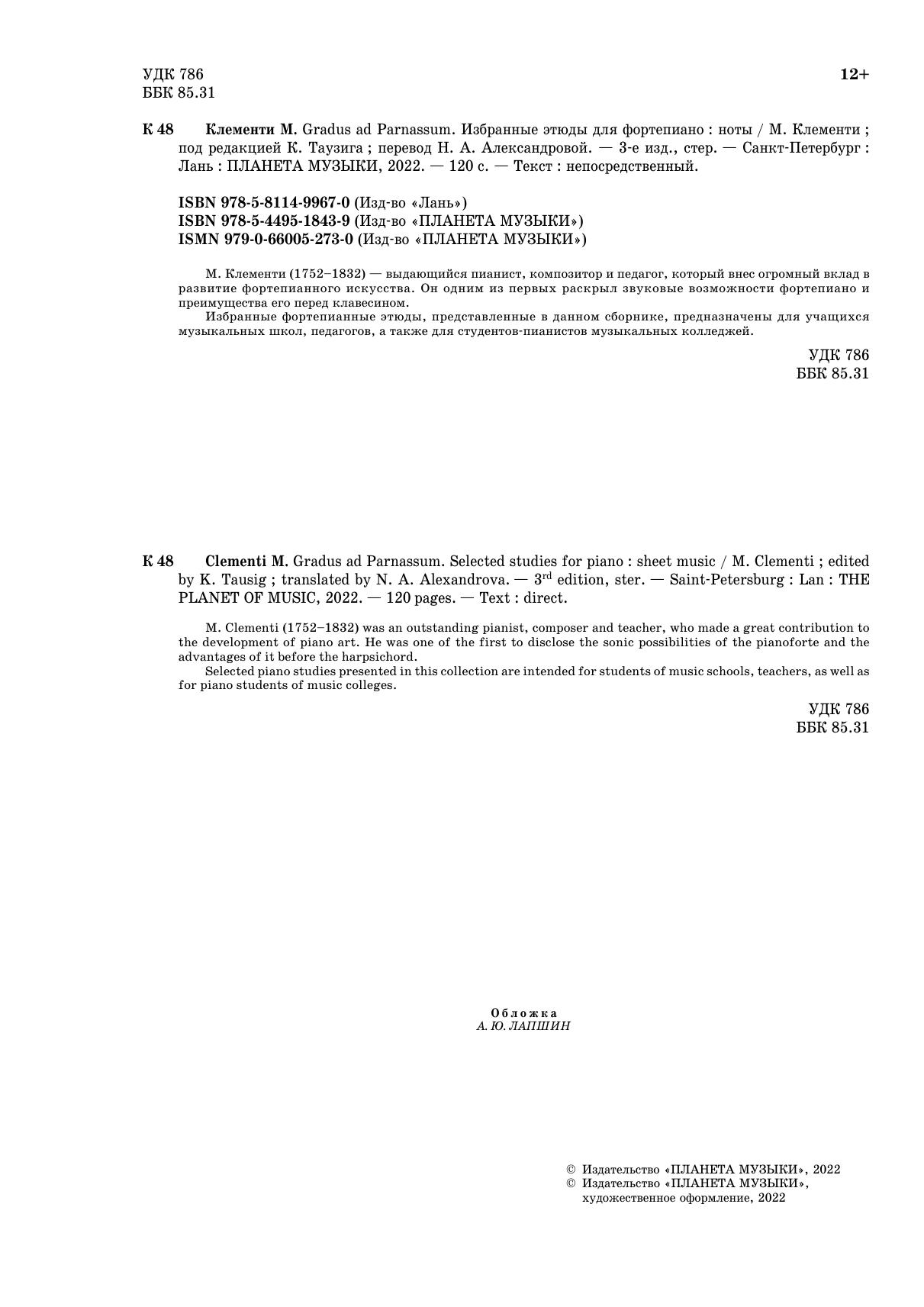 Gradus ad Parnassum. Избранные этюды для фортепиано