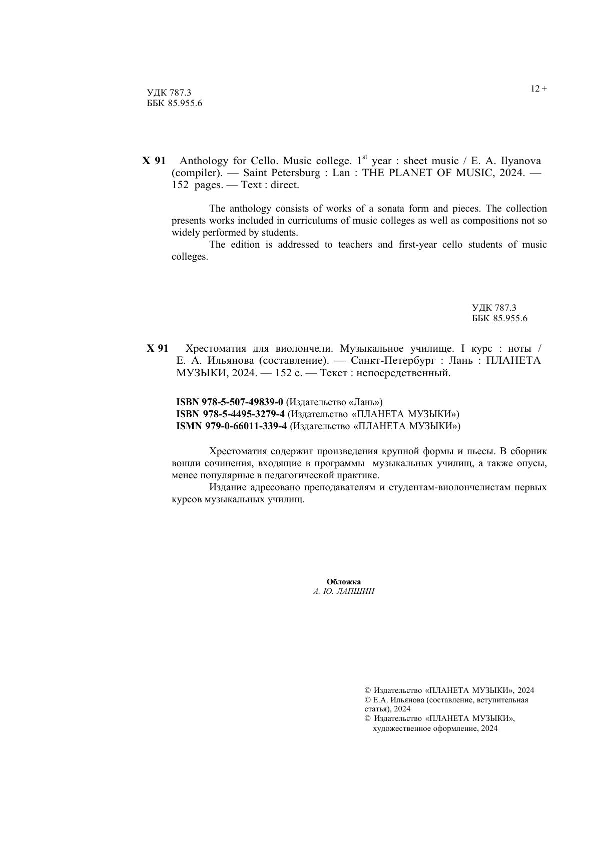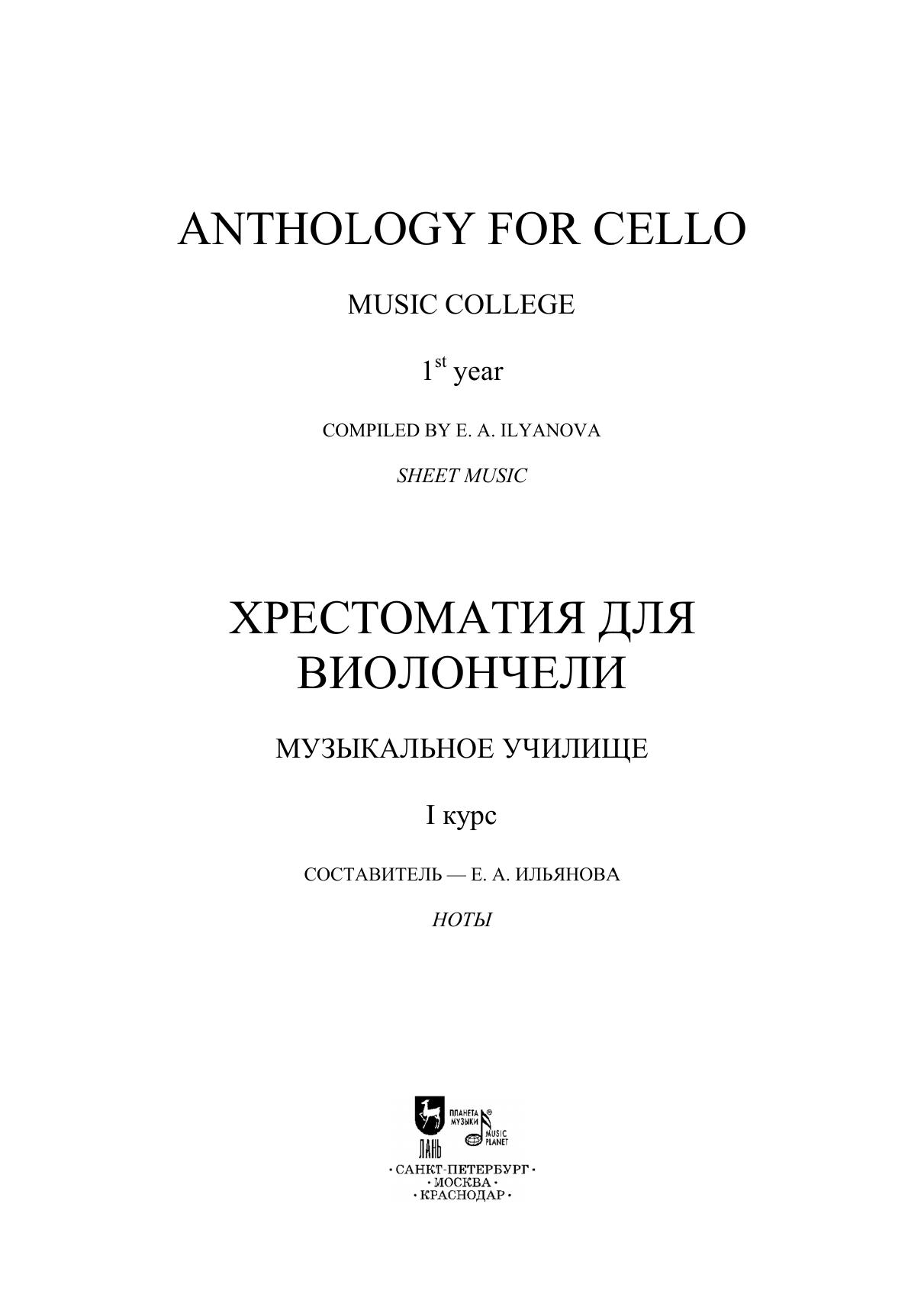 Хрестоматия содержит произведения крупной формы и пьесы. В сборник вошли сочинения, входящие в программы музыкальных училищ, а также опусы, менее популярные в педагогической практике. Издание адресовано преподавателям и студентам-виолончелистам первых курсов музыкальных училищ. The anthology consists of works of a sonata form and pieces. The collection presents works included in curriculums of music colleges as well as compositions not so widely performed by students. The edition is addressed to teachers and first-year cello students of music colleges.