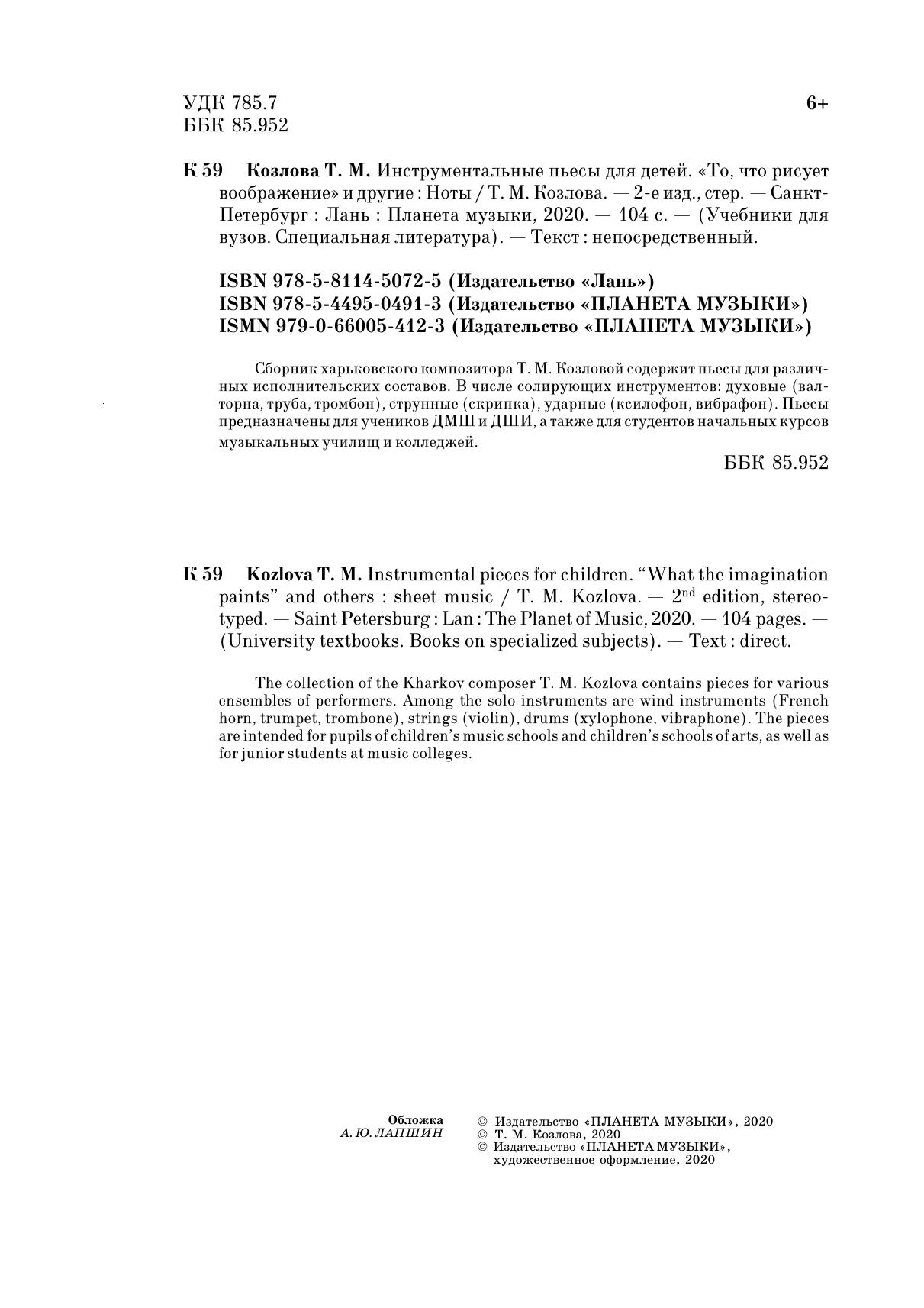 Сборник харьковского композитора Т. М. Козловой содержит пьесы для различных исполнительских составов. В числе солирующих инструментов: духовые (валторна, труба, тромбон), струнные (скрипка), ударные (ксилофон, вибрафон). Пьесы предназначены для учеников ДМШ и ДШИ, а также для студентов начальных курсов музыкальных училищ и колледжей.
