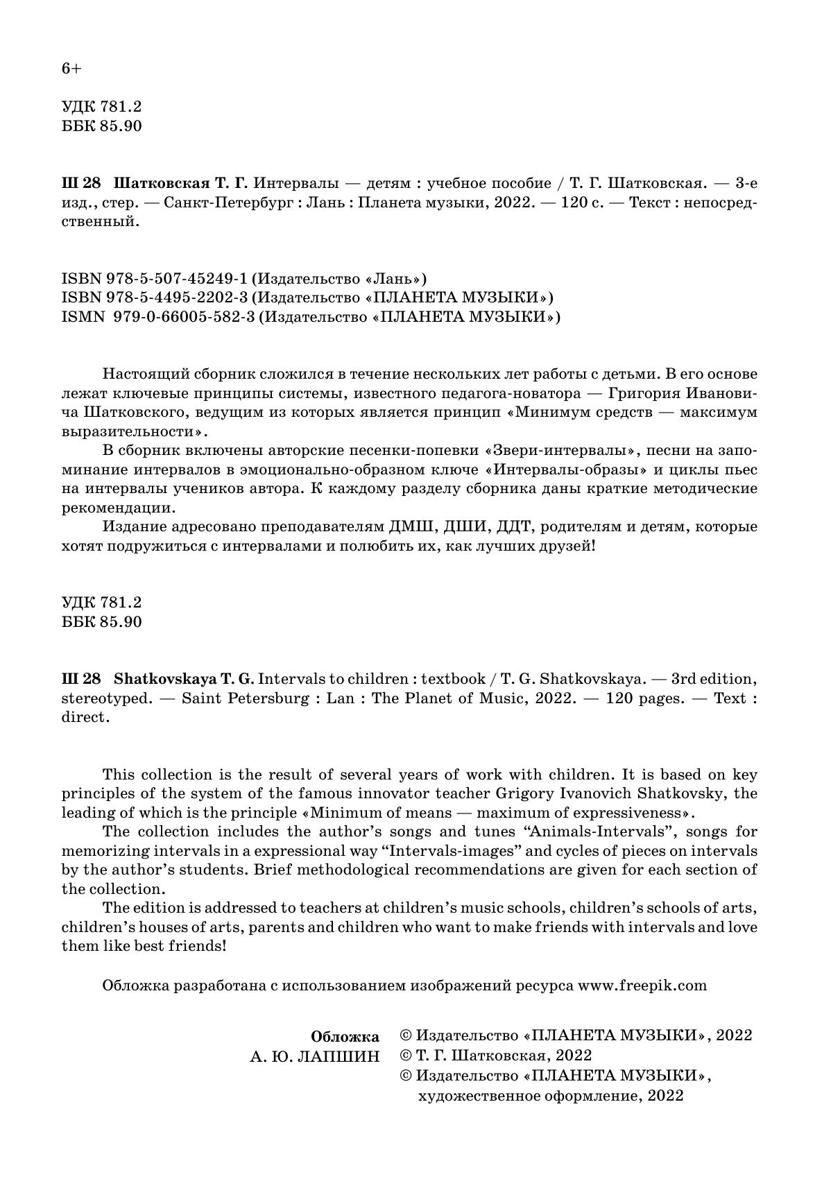The edition is addressed to teachers at children’s music schools, children’s schools of arts, children’s houses of arts, parents and children who want to make friends with intervals and love them like best friends!