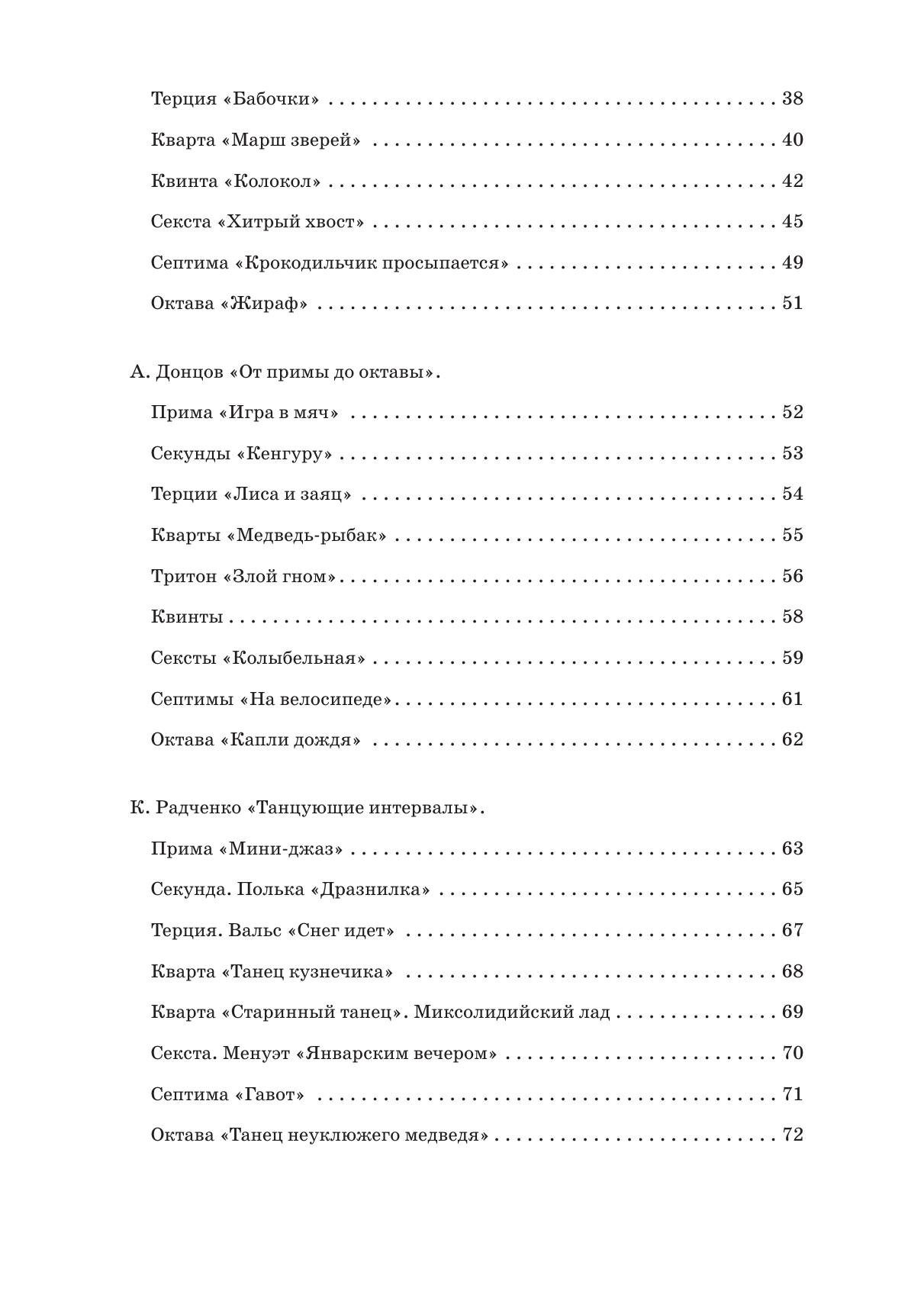 В сборник включены авторские песенки-попевки «Звери-интервалы», песни на запоминание интервалов в эмоционально-образном ключе «Интервалы-образы» и циклы пьес на интервалы учеников автора. К каждому разделу сборника даны краткие методические рекомендации.