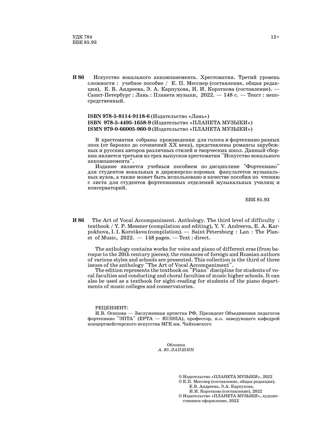 Искусство вокального аккомпанемента. Хрестоматия. Третий уровень сложности