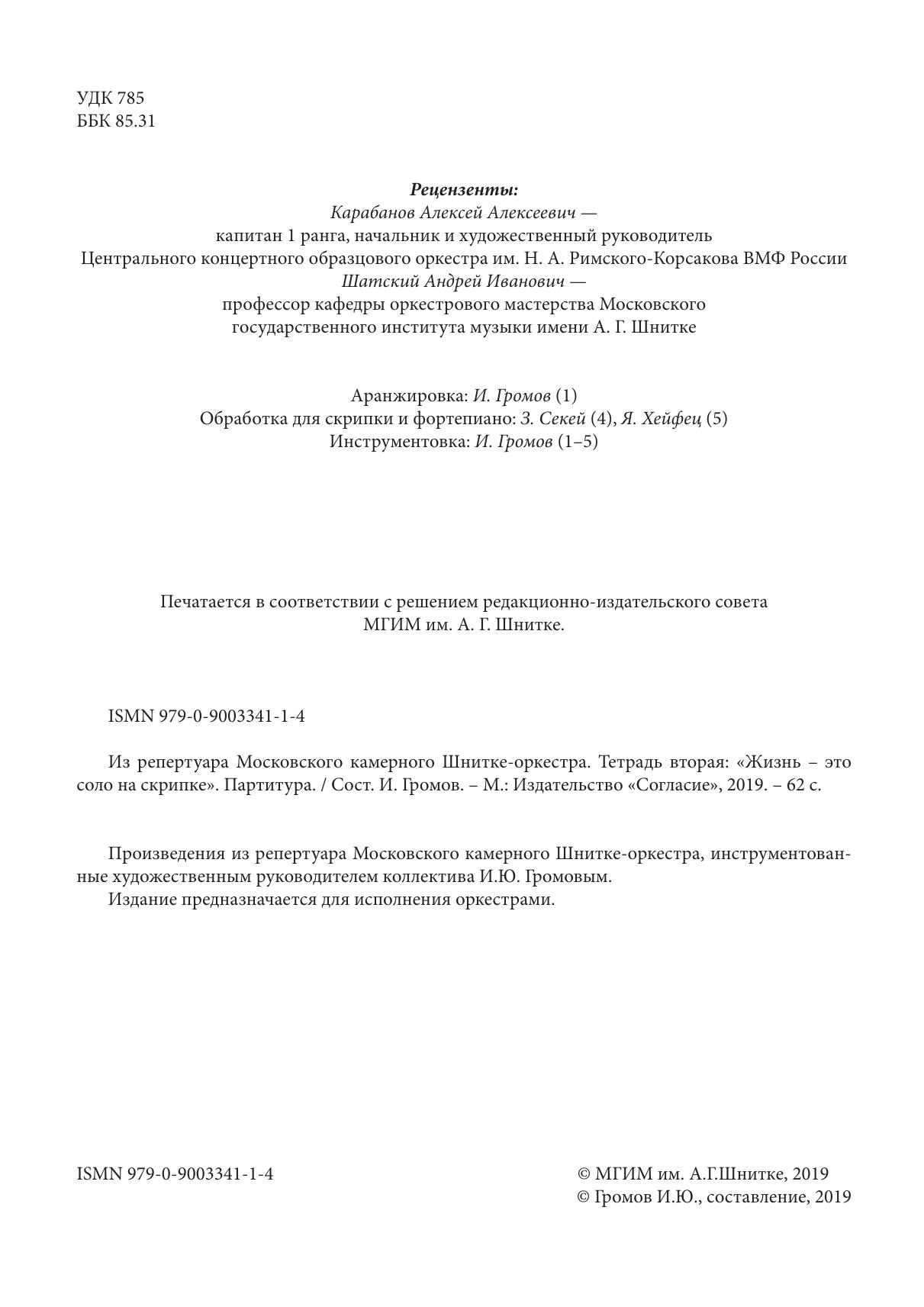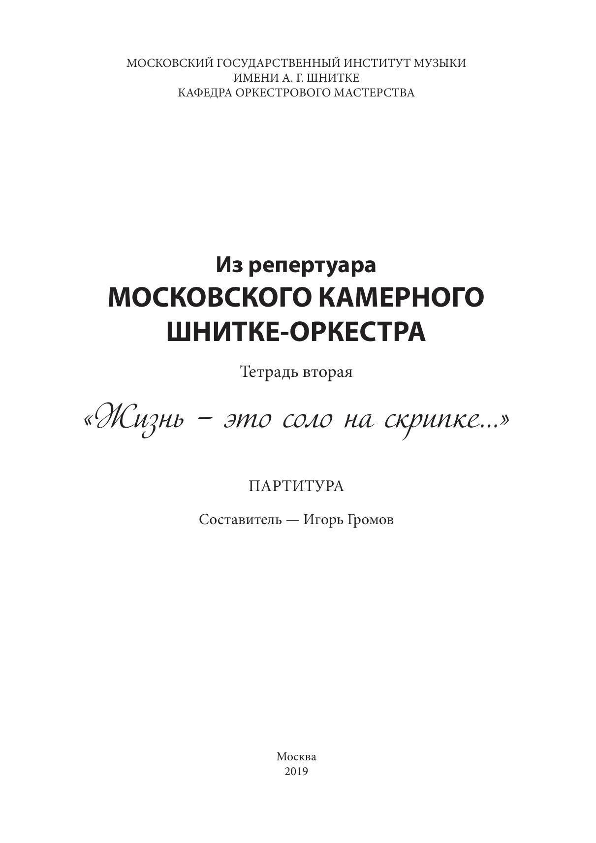 Из репертуара Московского камерного Шнитке-оркестра. Тетрадь вторая: «Жизнь – это соло на скрипке». Партитура