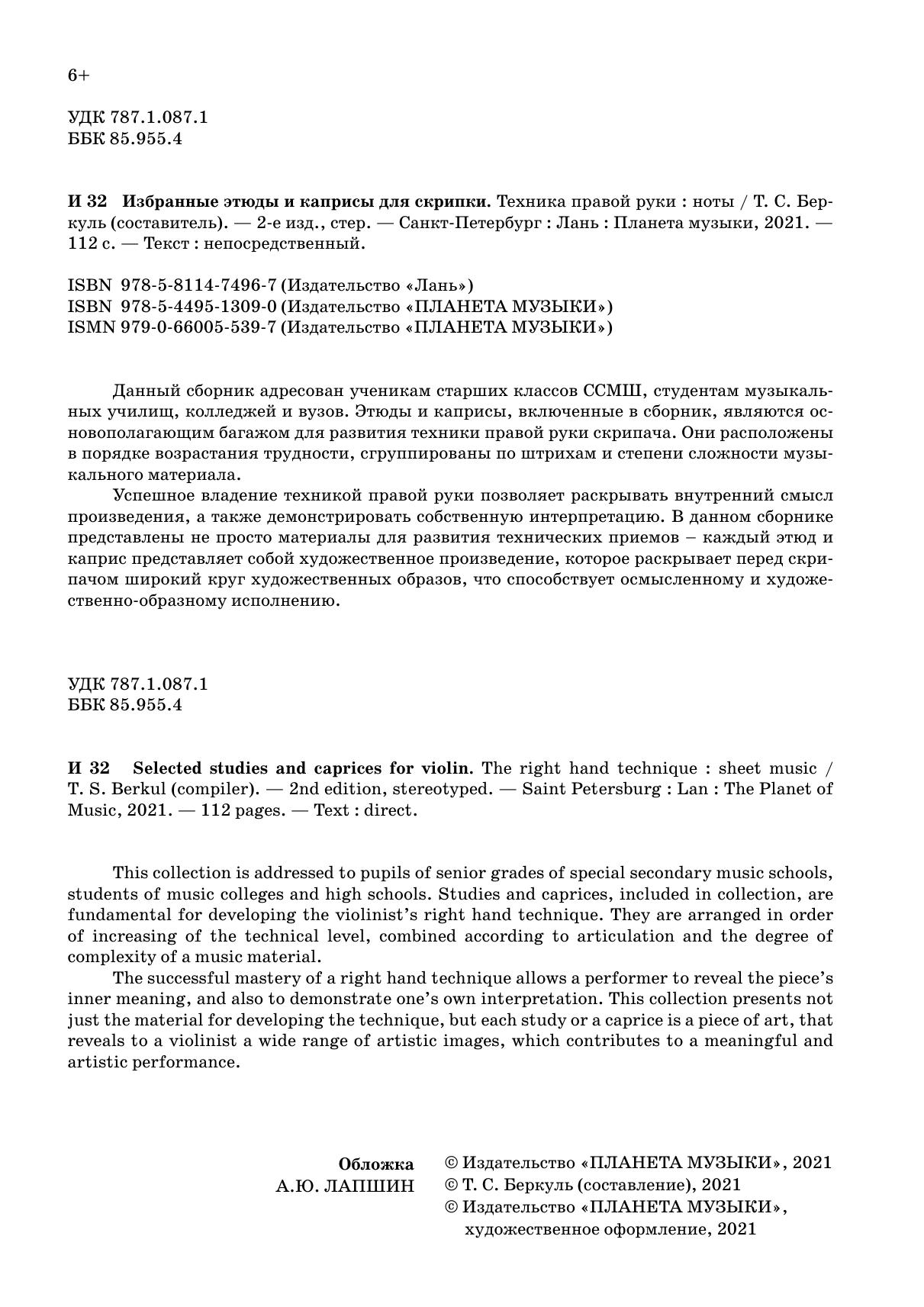 Успешное владение техникой правой руки позволяет раскрывать внутренний смысл произведения, а также демонстрировать собственную интерпретацию. В данном сборнике представлены не просто материалы для развития технических приемов – каждый этюд и каприс представляет собой художественное произведение, которое раскрывает перед скрипачом широкий круг художественных образов, что способствует осмысленному и художественно-образному исполнению.