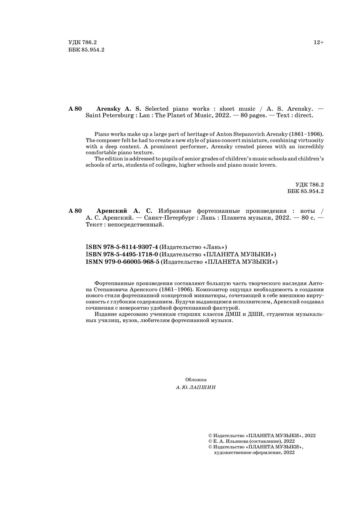 The edition is addressed to pupils of senior grades of children’s music schools and children’s schools of arts, students of colleges, higher schools and piano music lovers.