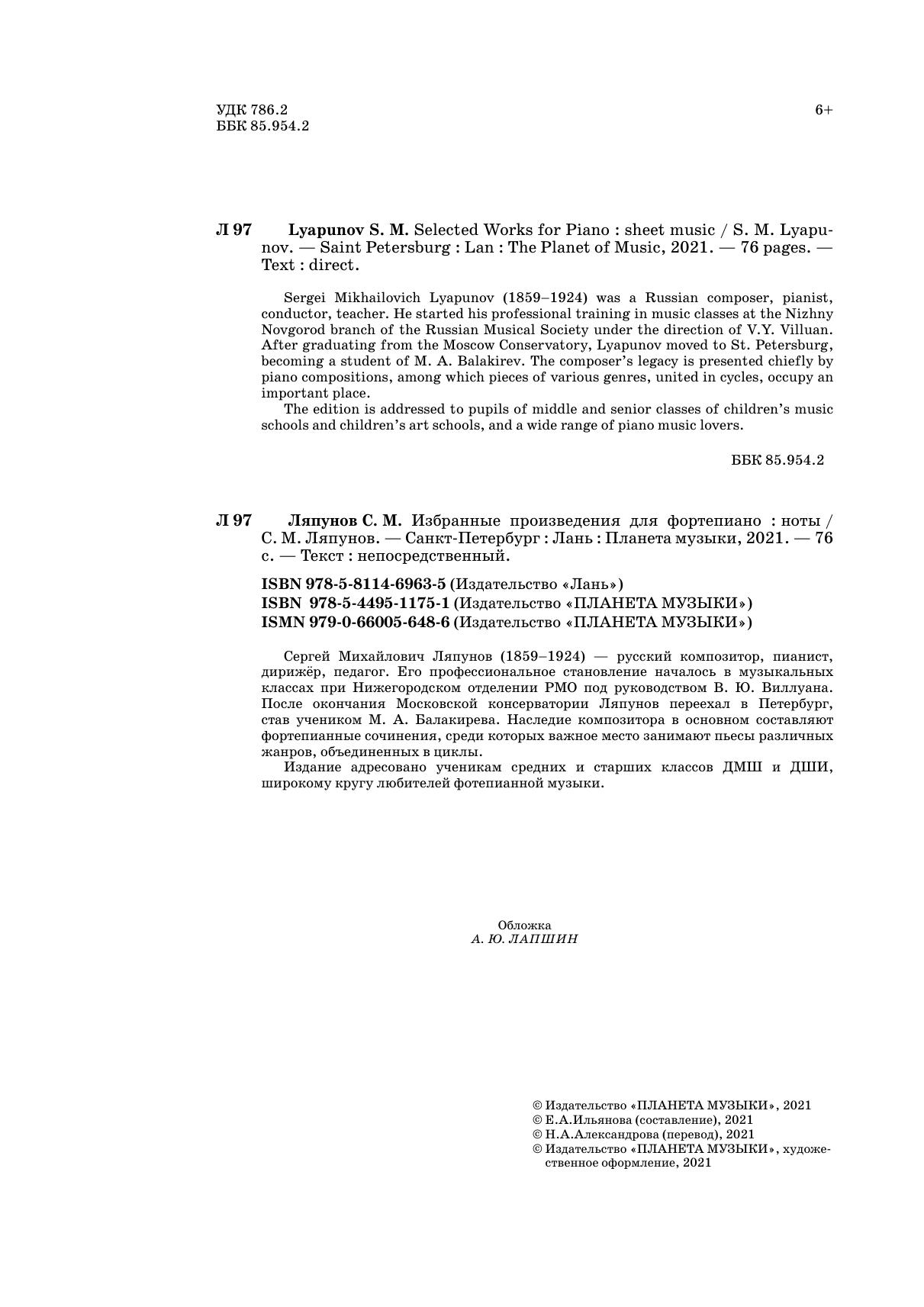 Сергей Михайлович Ляпунов (1859-1924) – русский композитор, пианист, дирижёр, педагог. Его профессиональное становление началось в музыкальных классах при Нижегородском отделении РМО под руководством В.Ю. Виллуана. После окончания Московской консерватории Ляпунов переехал в Петербург, став учеником М. А. Балакирева. Наследие композитора в основном составляют фортепианные сочинения, среди которых важное место занимают пьесы различных жанров, объединенных в циклы.