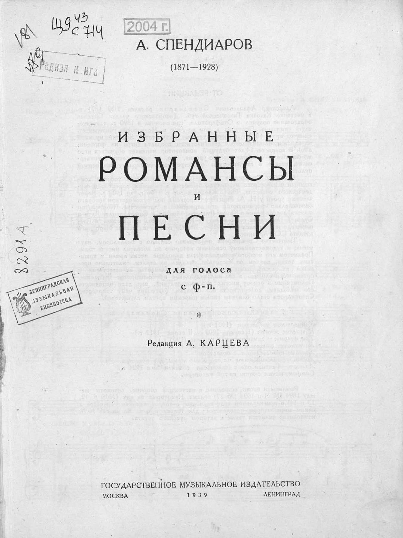 Перешедшие в общественное достояние материалы электронного фонда ЦГПБ им. В.В. Маяковского. Сведения о издательстве или типографии: Музгиз. Место издания: Москва