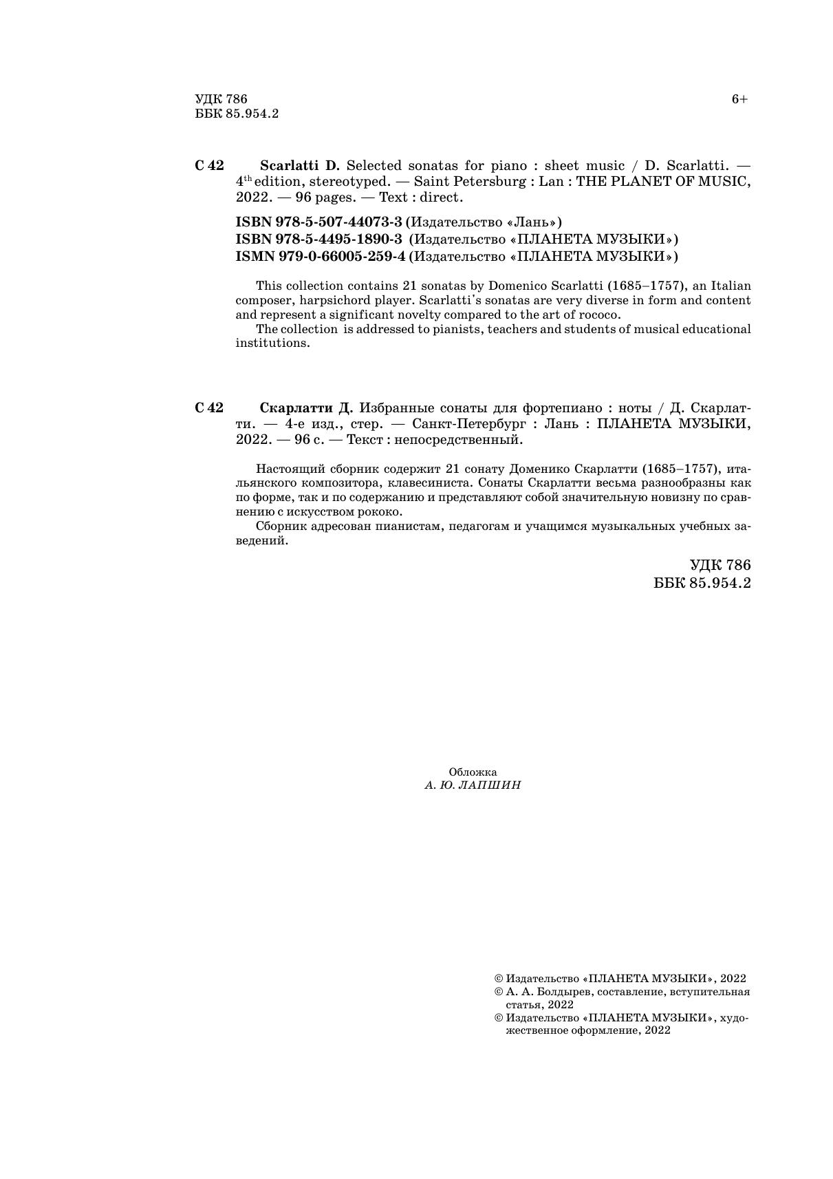 Настоящий сборник содержит 21 сонату Доменико Скарлатти (1685–1757), итальянского композитора, клавесиниста. Сонаты Скарлатти весьма разнообразны как по форме, так и по содержанию и представляют собой значительную новизну по сравнению с искусством рококо.
