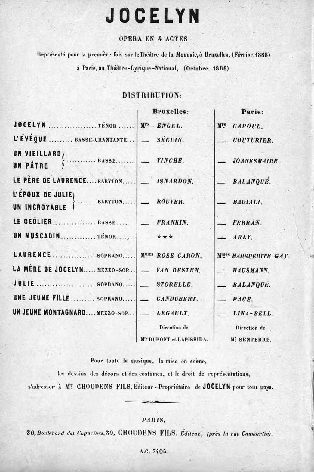 Перешедшие в общественное достояние материалы электронного фонда ЦГПБ им. В.В. Маяковского. Сведения о издательстве или типографии: Choudens (ранее Choudens P?re et Fils). Место издания: Париж