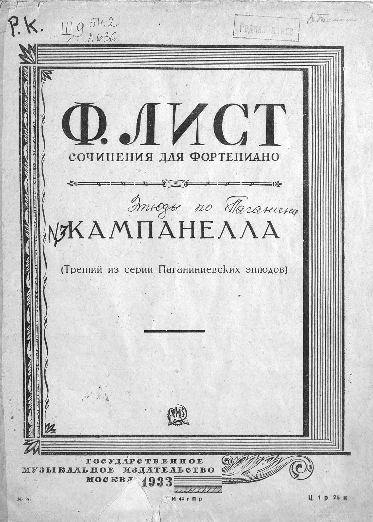 Перешедшие в общественное достояние материалы электронного фонда ЦГПБ им. В.В. Маяковского. Сведения о издательстве или типографии: Музгиз. Место издания: Москва
