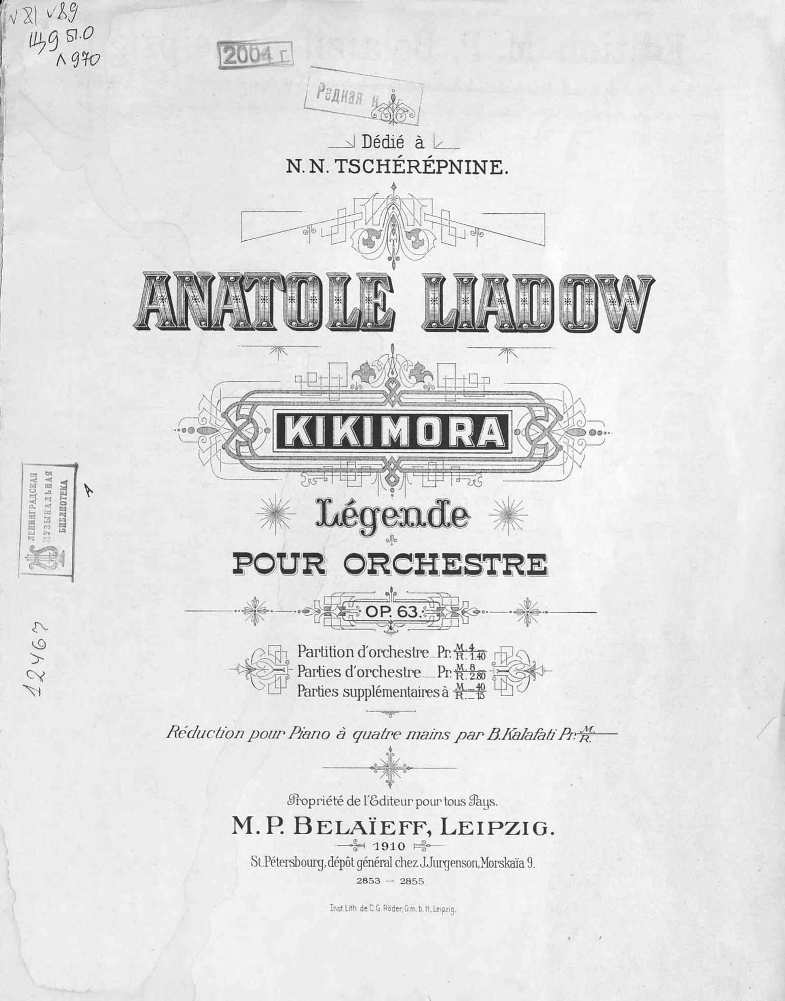 Перешедшие в общественное достояние материалы электронного фонда ЦГПБ им. В.В. Маяковского. Сведения о издательстве или типографии: изд. М. П. Беляева. Место издания: Лейпциг