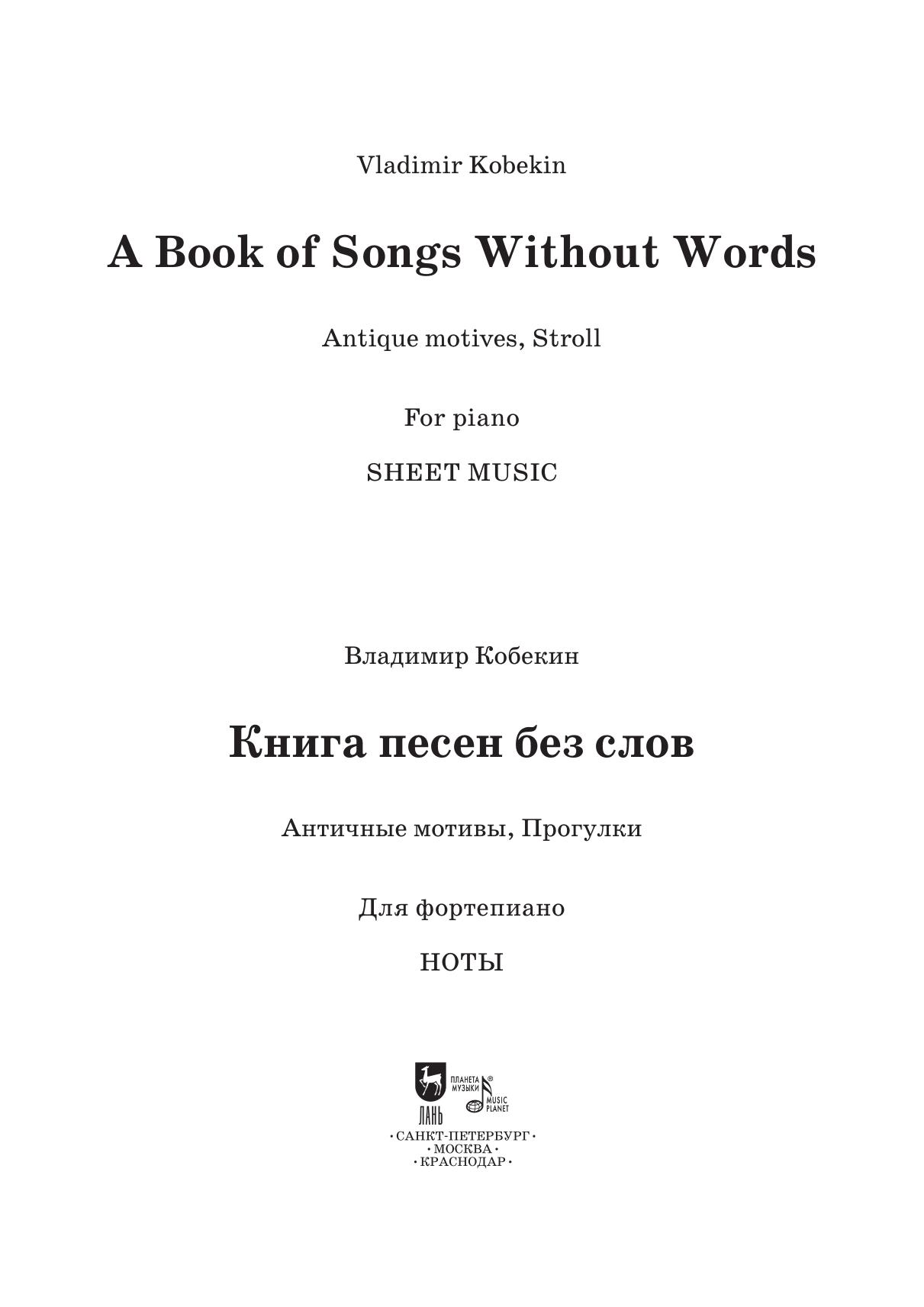 Книга песен без слов. Античные мотивы, Прогулки. Для фортепиано