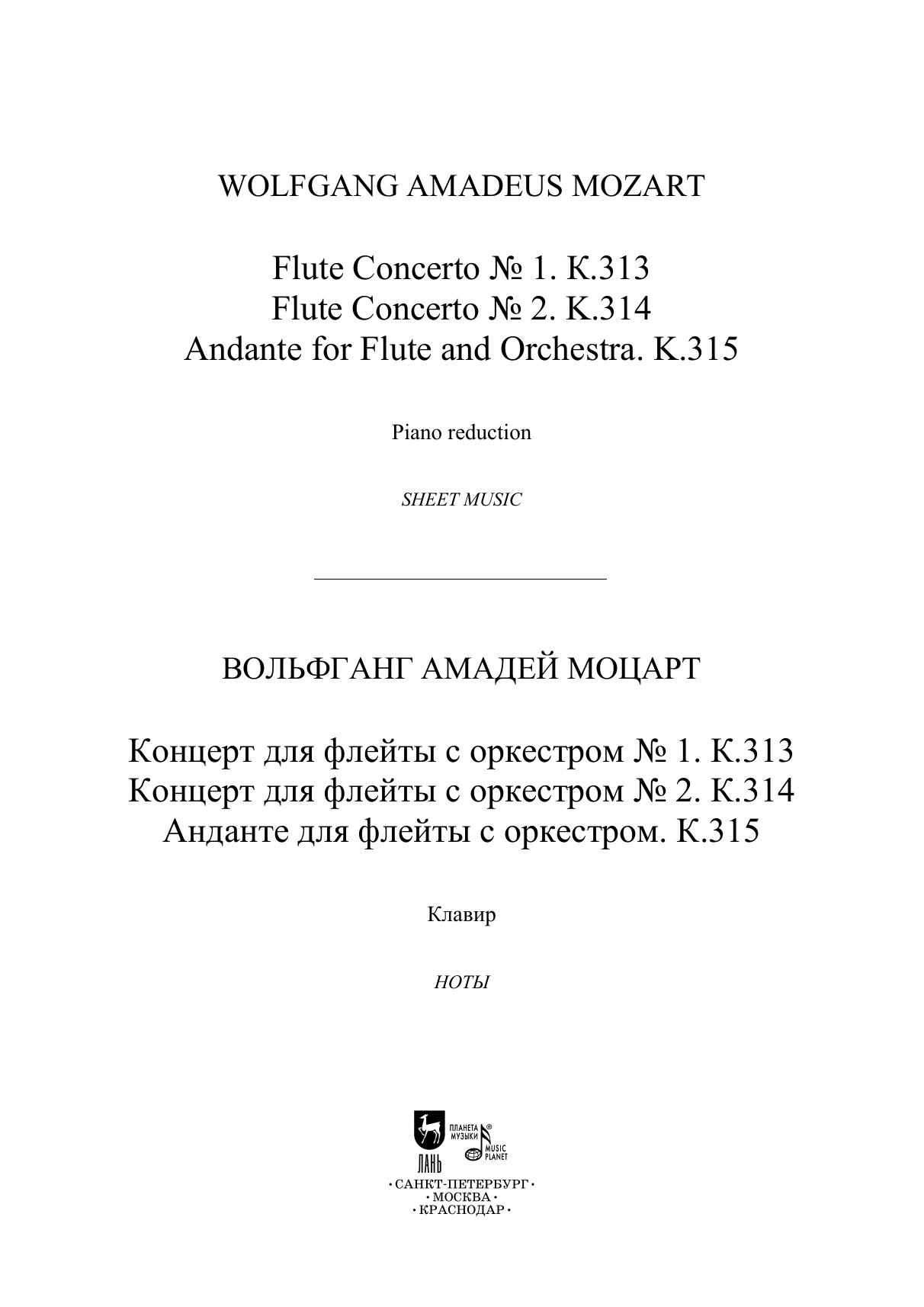 Концерт для флейты с оркестром № 1. К. 313. Концерт для флейты с оркестром № 2. К. 314. Анданте для флейты с оркестром. К. 315. Клавир
