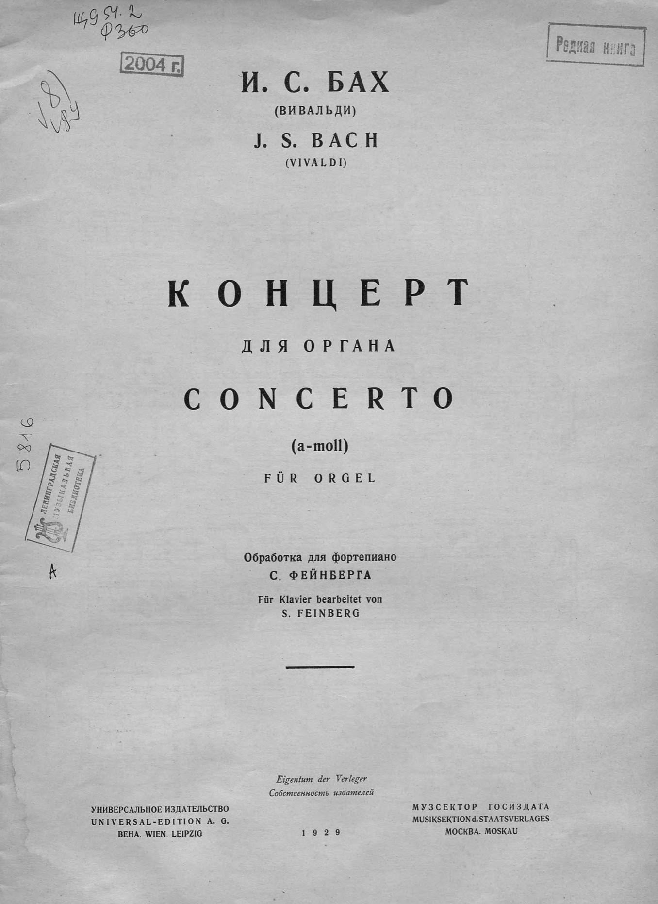 Концерт для органа. (a-moll)