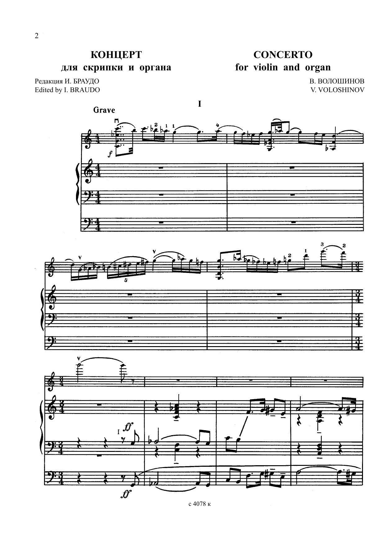Концерт для скрипки и органа написан в 1929–1930 г. В 1959 году автор осуществил значительную переработку Концерта.