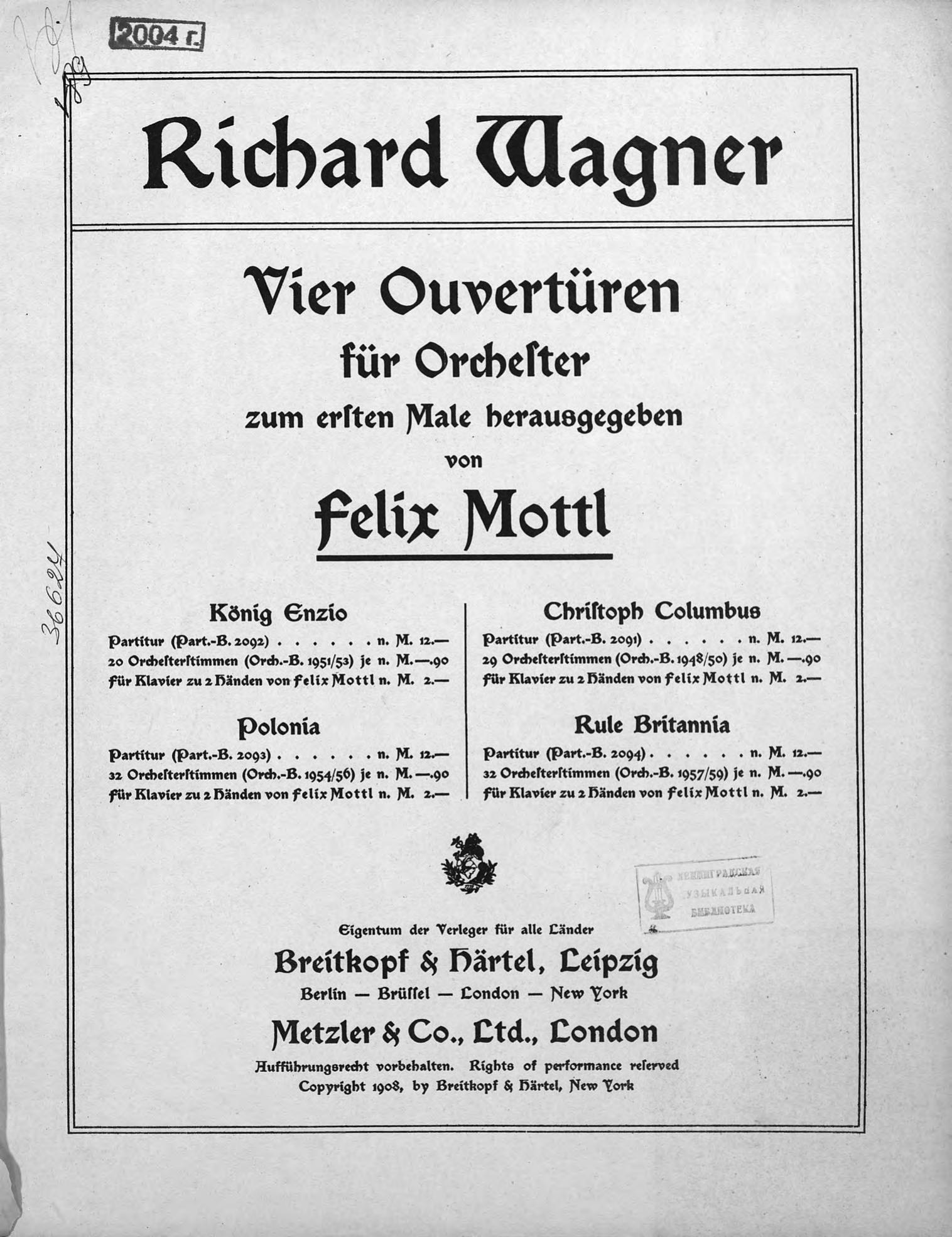 Перешедшие в общественное достояние материалы электронного фонда ЦГПБ им. В.В. Маяковского. Сведения о издательстве или типографии: Breitkopf & H?rtel. Место издания: Лейпциг