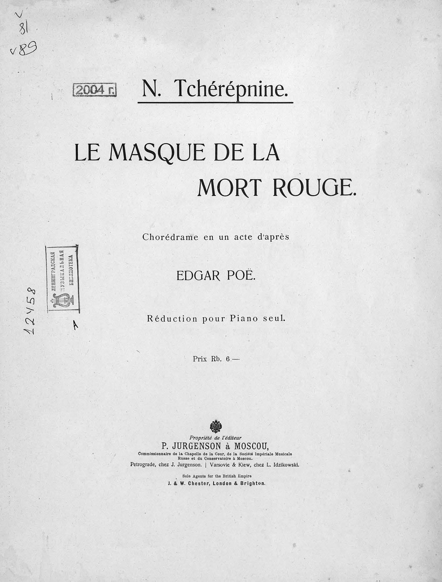 Перешедшие в общественное достояние материалы электронного фонда ЦГПБ им. В.В. Маяковского. Сведения о издательстве или типографии: изд. П. Юргенсона. Место издания: Москва