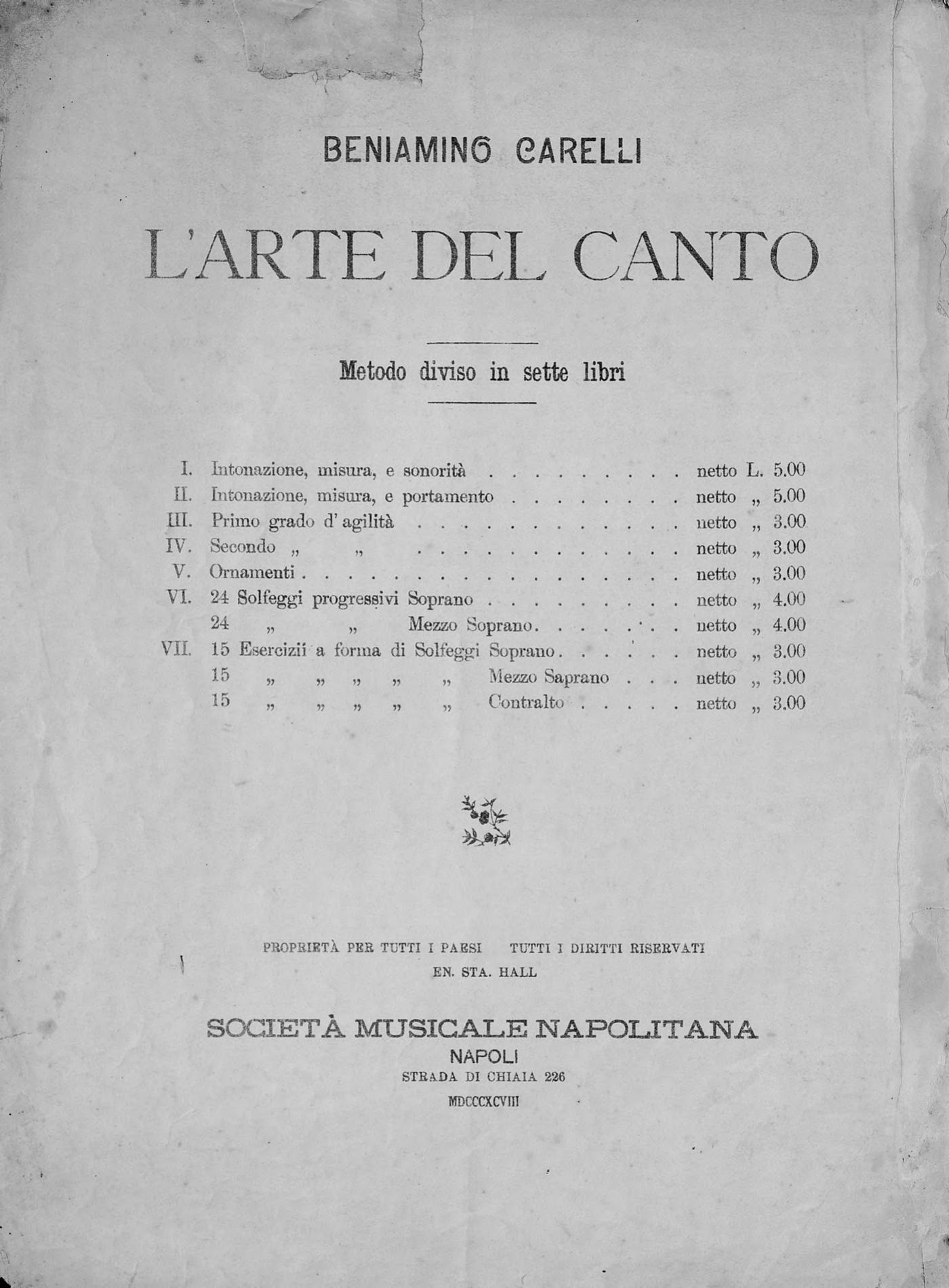Перешедшие в общественное достояние материалы электронного фонда ЦГПБ им. В.В. Маяковского. Сведения о издательстве или типографии: Societa musicale Napolitana. Strada di Chiaia. Место издания: Неаполь