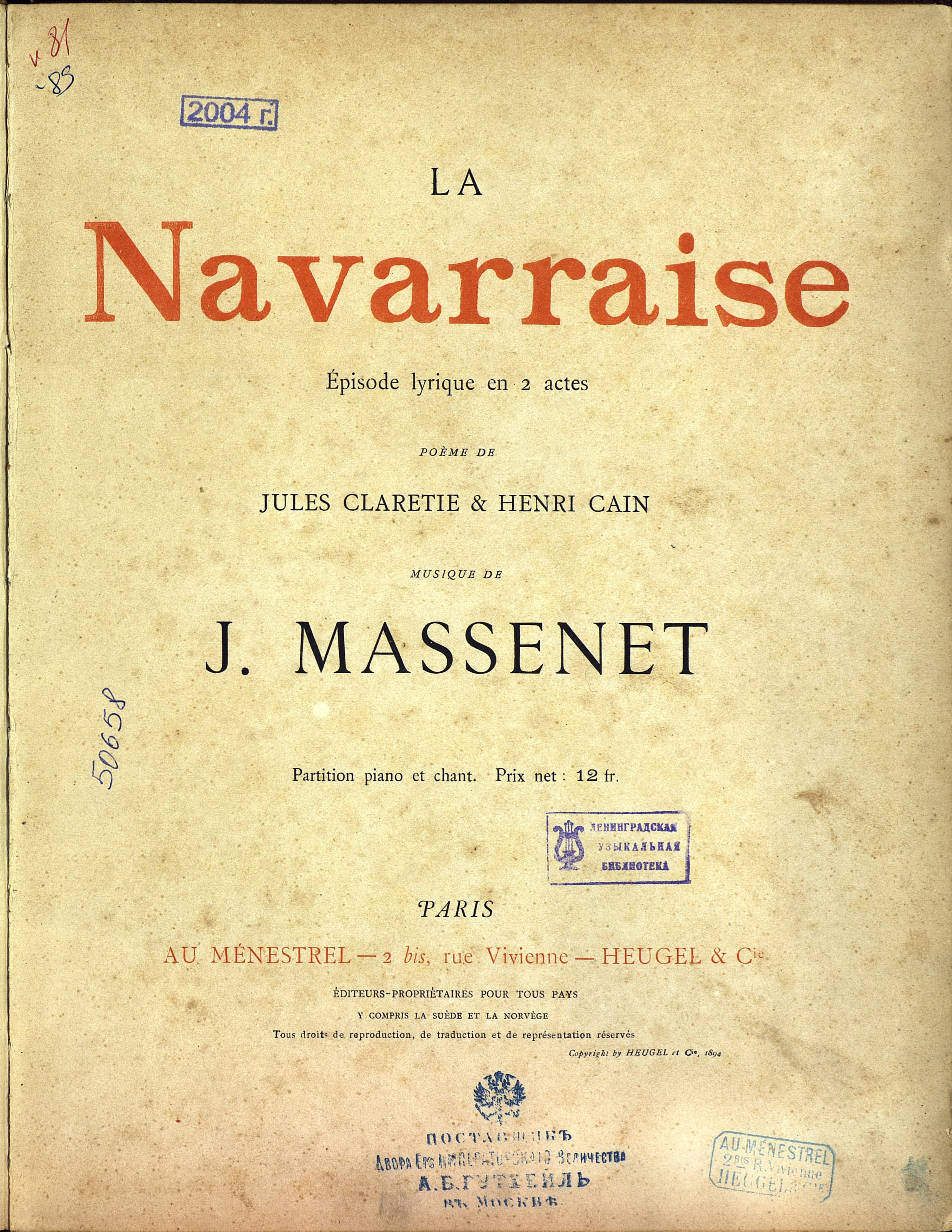 Перешедшие в общественное достояние материалы электронного фонда ЦГПБ им. В.В. Маяковского. Сведения о издательстве или типографии: Heugel & C-ie. Место издания: Париж