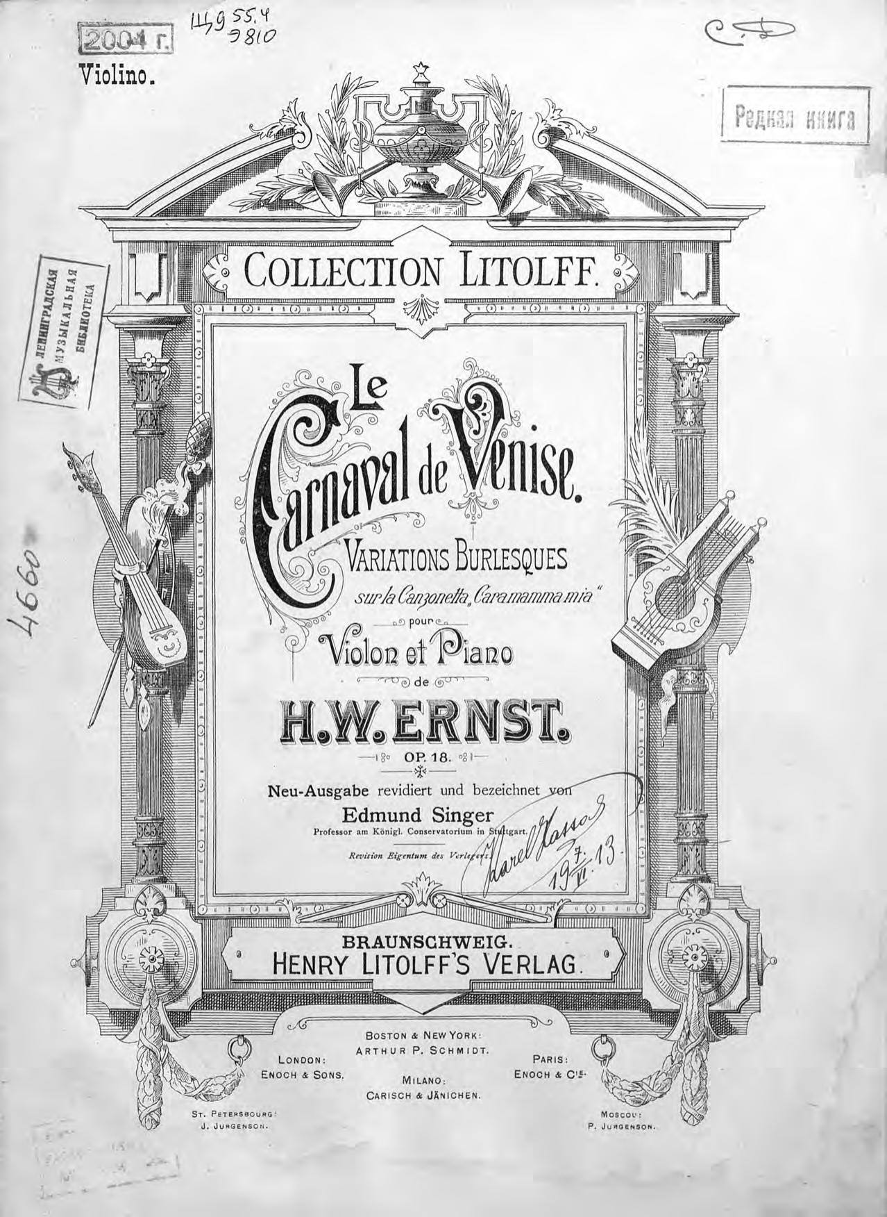 Перешедшие в общественное достояние материалы электронного фонда ЦГПБ им. В.В. Маяковского. Сведения о издательстве или типографии: H. Litolff. Место издания: Брауншвейг