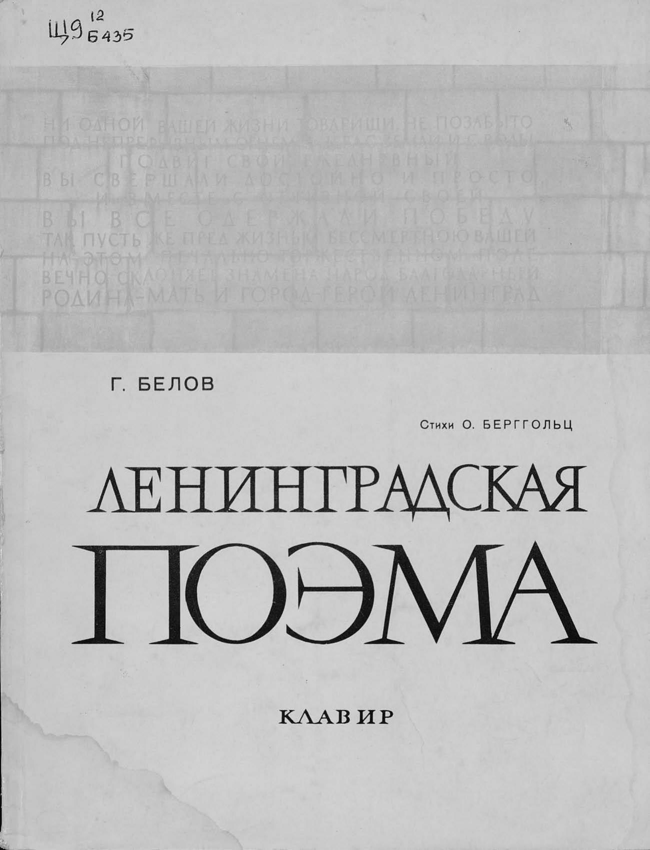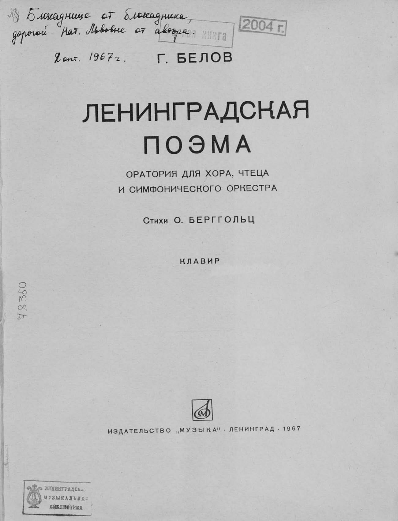 Перешедшие в общественное достояние материалы электронного фонда ЦГПБ им. В.В. Маяковского. Сведения о издательстве или типографии: Музыка. Место издания: Ленинград