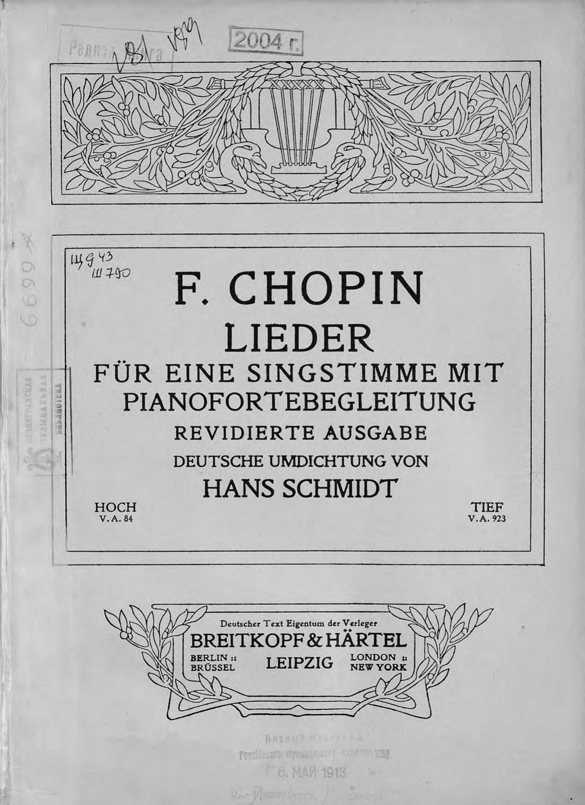 Перешедшие в общественное достояние материалы электронного фонда ЦГПБ им. В.В. Маяковского. Сведения о издательстве или типографии: Breitkopf & H?rtel. Место издания: Лейпциг