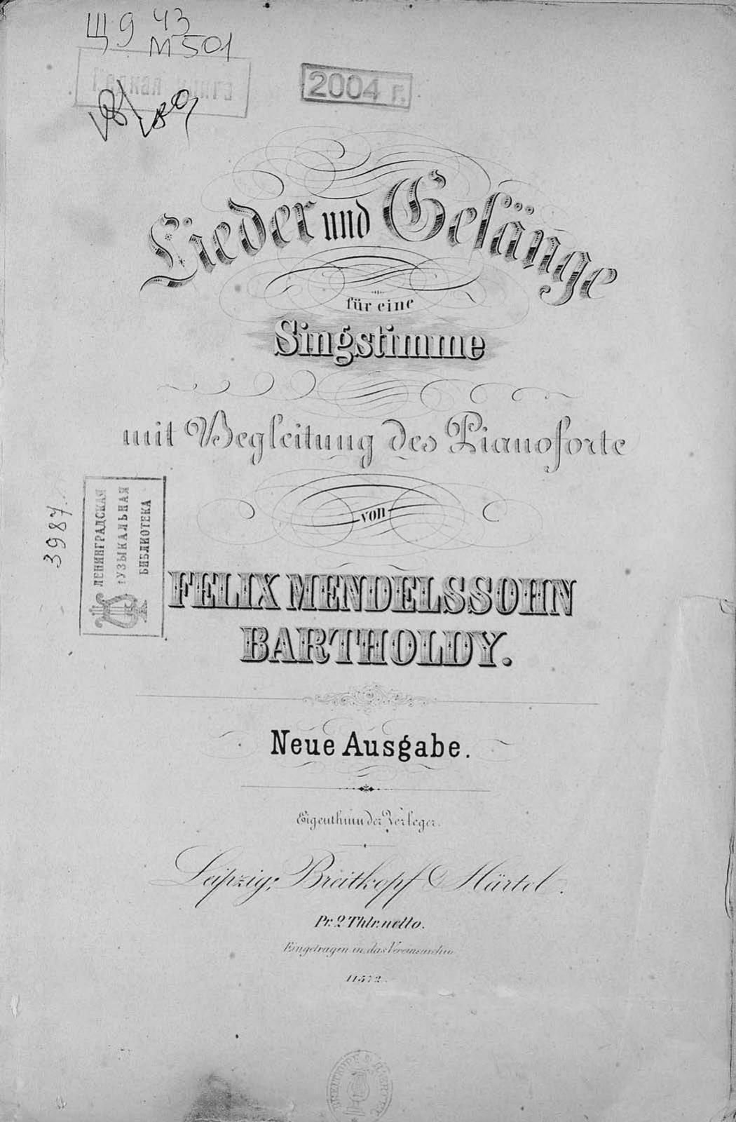 Lieder und Gesange fur eine Singstimme mit Begleitung des Pianoforte v. Felix Mendelsohn-Bartholdy