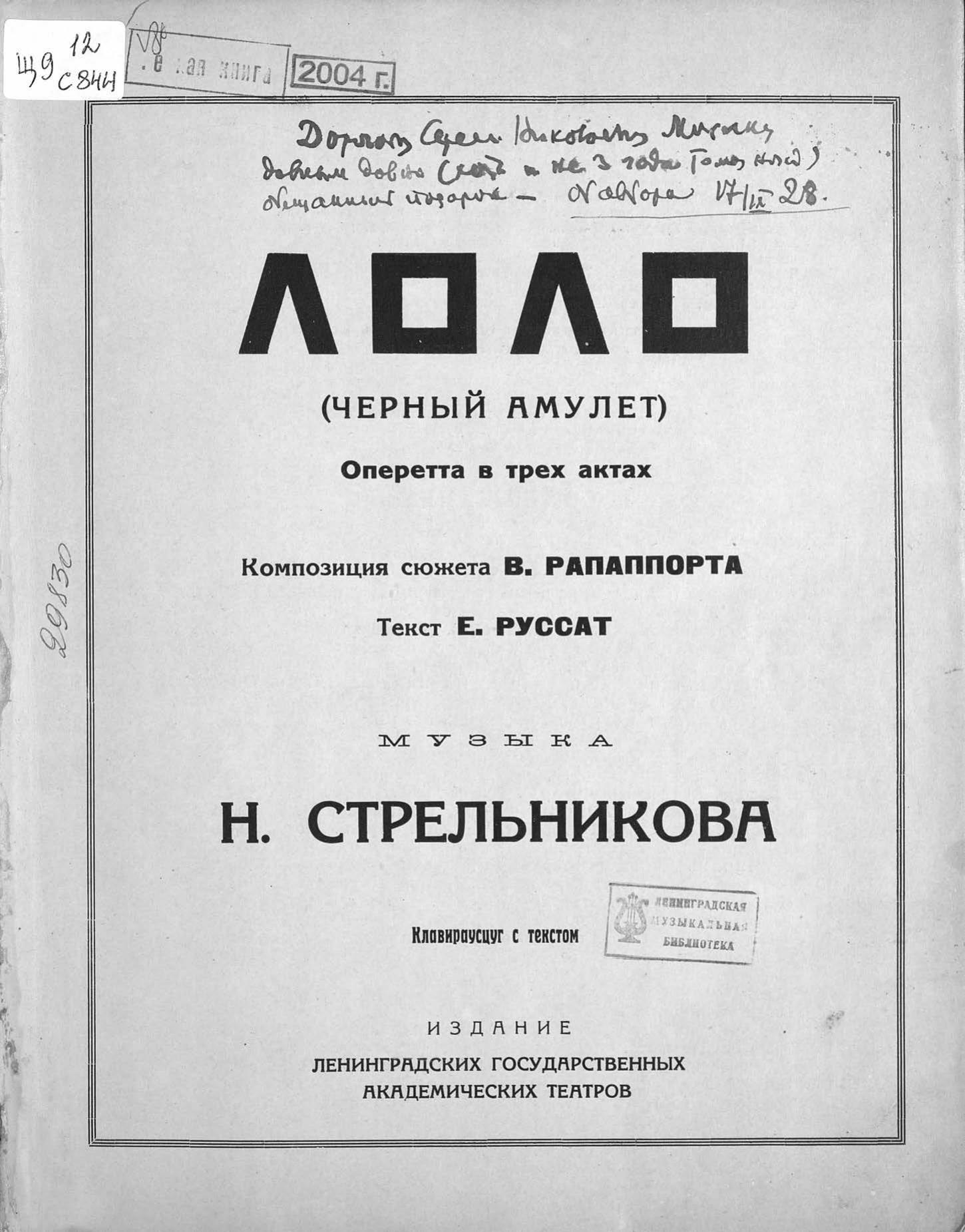 Перешедшие в общественное достояние материалы электронного фонда ЦГПБ им. В.В. Маяковского. Сведения о издательстве или типографии: Издание ленинградских государственных академических театров.