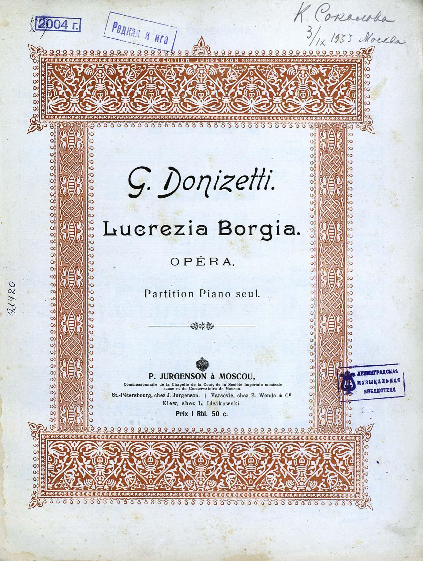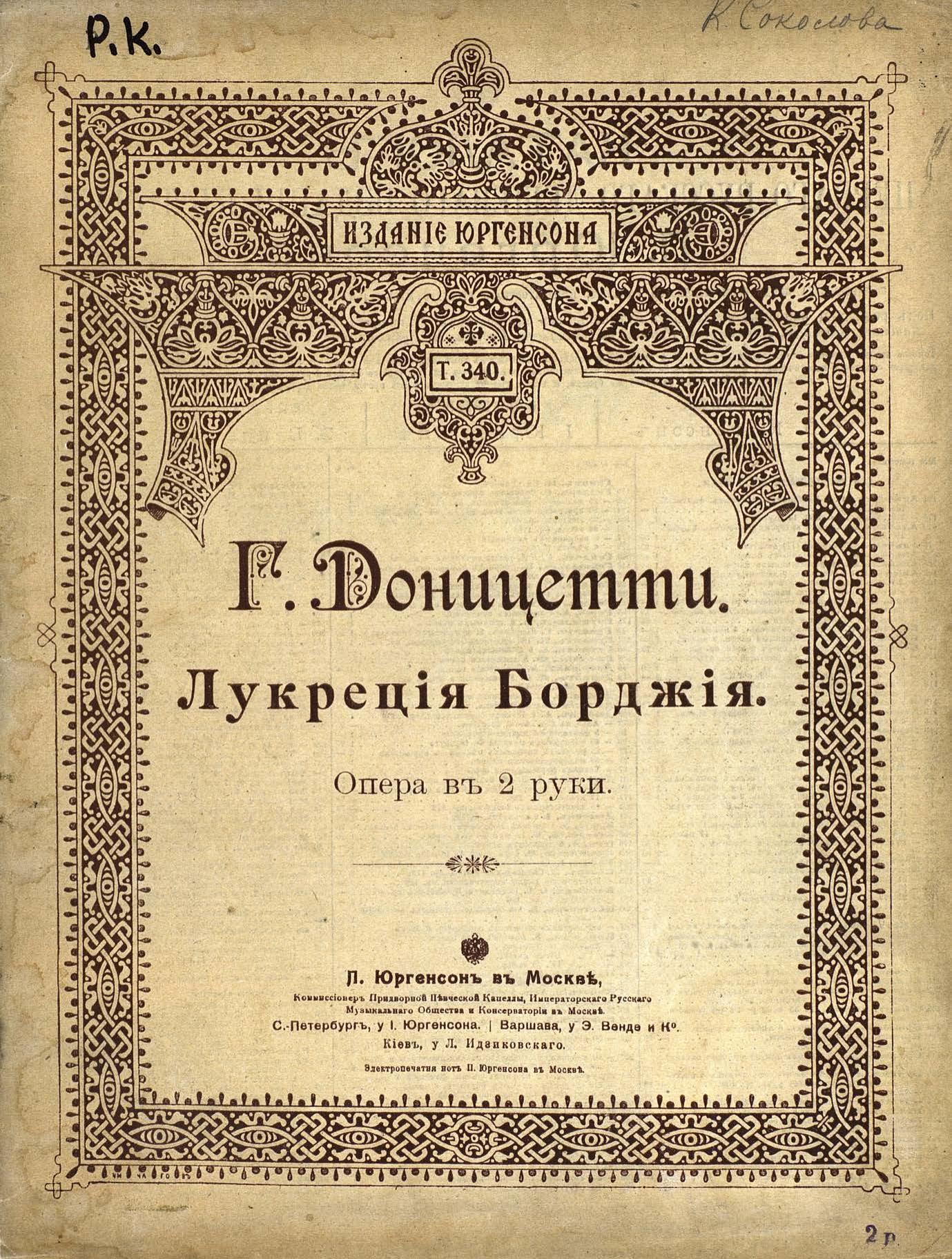 Перешедшие в общественное достояние материалы электронного фонда ЦГПБ им. В.В. Маяковского. Сведения о издательстве или типографии: П. Юргенсон. Место издания: Москва