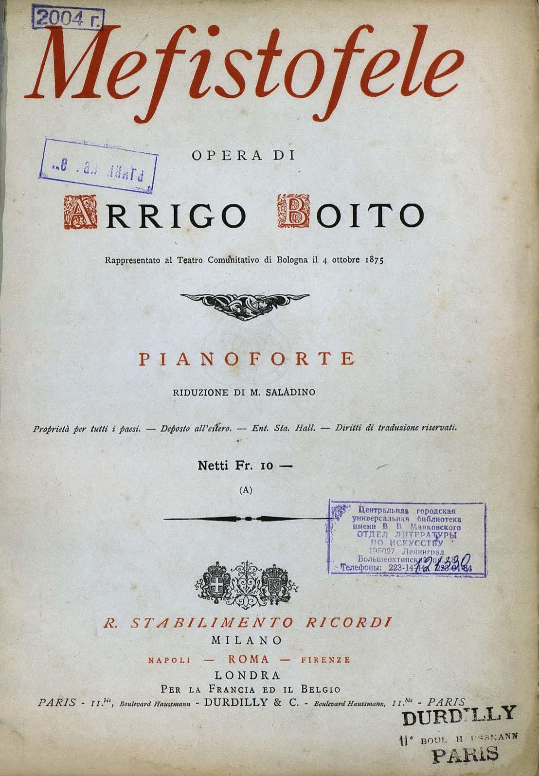 Перешедшие в общественное достояние материалы электронного фонда ЦГПБ им. В.В. Маяковского. Сведения о издательстве или типографии: R. Stabilimento Ricordi. Место издания: Милан