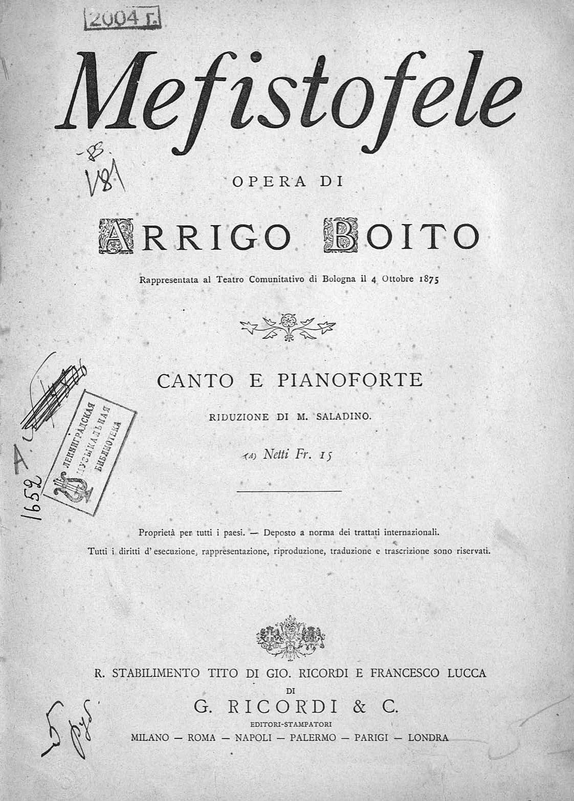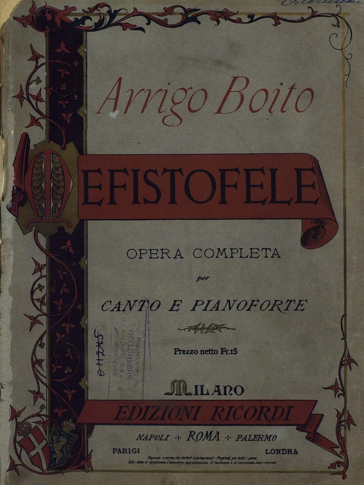 Перешедшие в общественное достояние материалы электронного фонда ЦГПБ им. В.В. Маяковского. Сведения о издательстве или типографии: Ricordi. Место издания: Милан