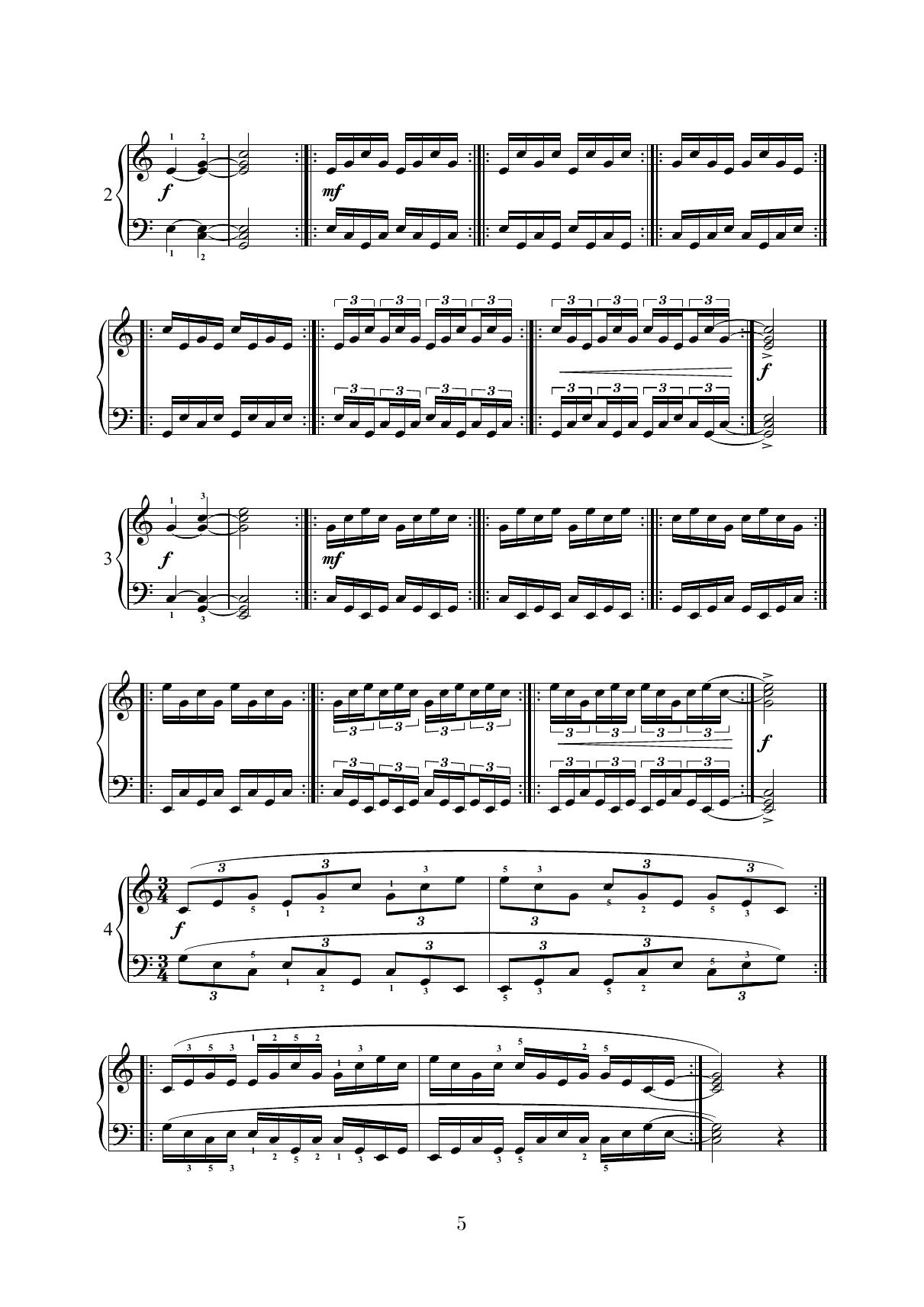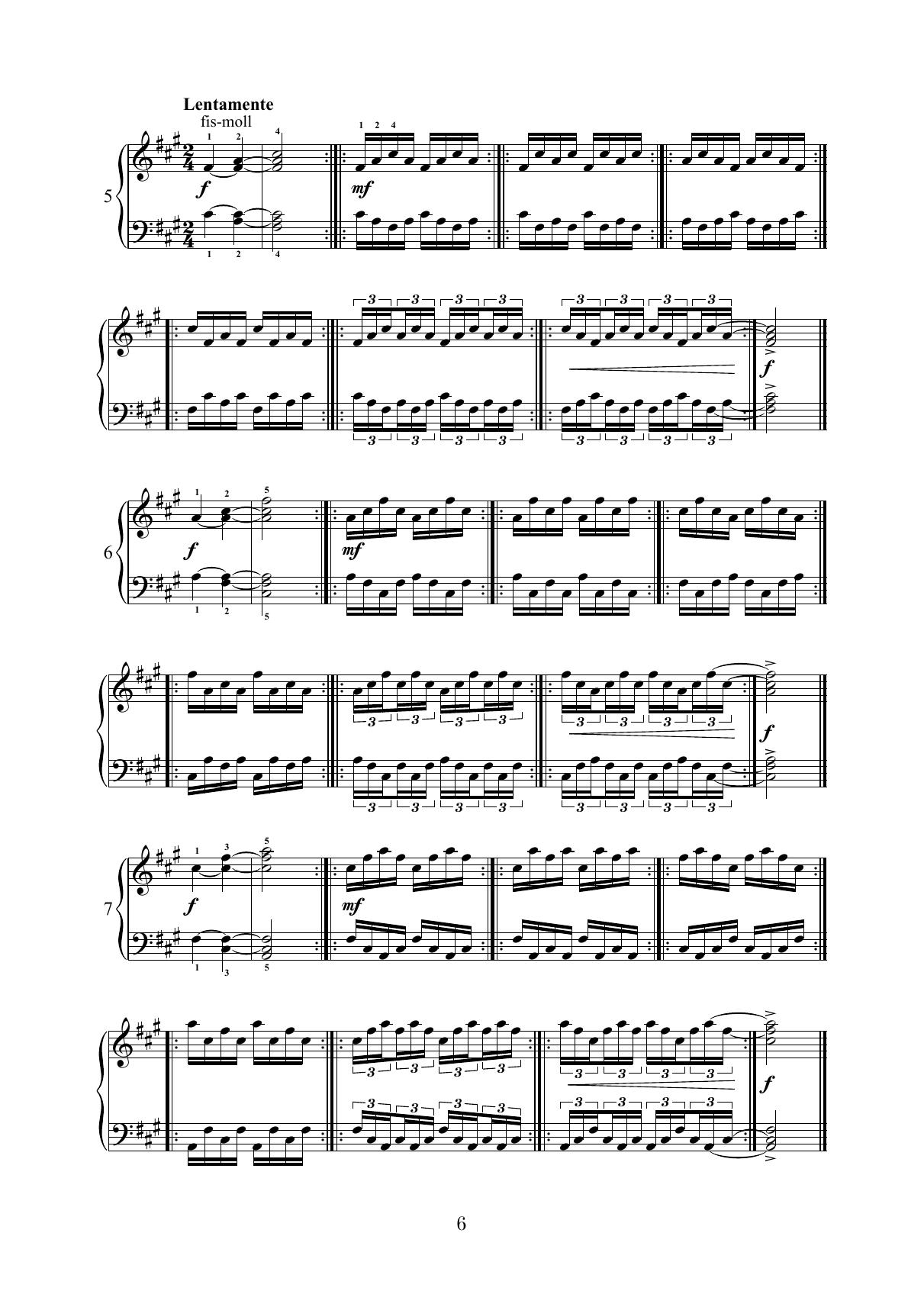 Книга III «Арпеджио» содержит упражнения на короткие, длинные, ломаные арпеджио в прямом и расходящемся движении, арпеджио с двойными нотами и др.