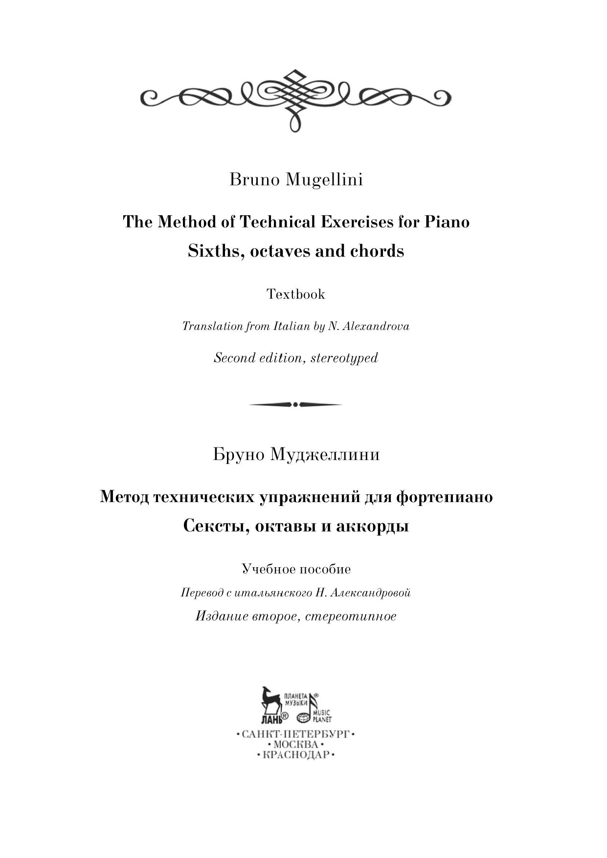 Метод технических упражнений для фортепиано. Сексты, октавы и аккорды