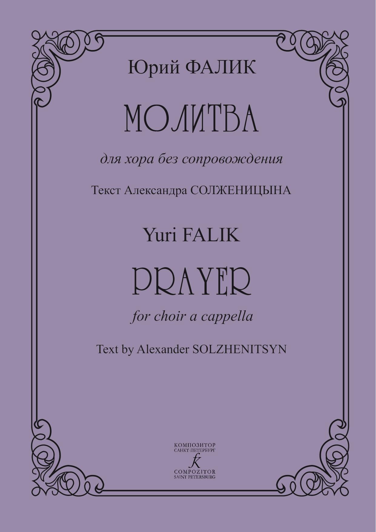 «Молитве» для хора без сопровождения на слова Александра Солженицына суждено было стать последним сочинением композитора. Юрий Фалик чутко уловил главнейшую сегодня тенденцию в искусстве — стремление к обретению гармонии, к восстановлению поруганной красоты. Спасет ли она мир — Бог весть, но прав наш первый поэт: «злодейство на земле получит воздаянье». Прислушаемся к «Молитве», к ее смиренной интонации, к ее словам: «Отче наш, Отче наш Всемилостивый, Россиюшку Твою многострадную не покинь в ошеломлении нынешнем… Господи Вседержитель, не дай ей пресечься…» Прозвучавшая впервые за несколько дней до кончины Юрия Фалика, «Молитва» оказалась символическим прощанием художника со своей страной, со своим временем, с любимым искусством.
