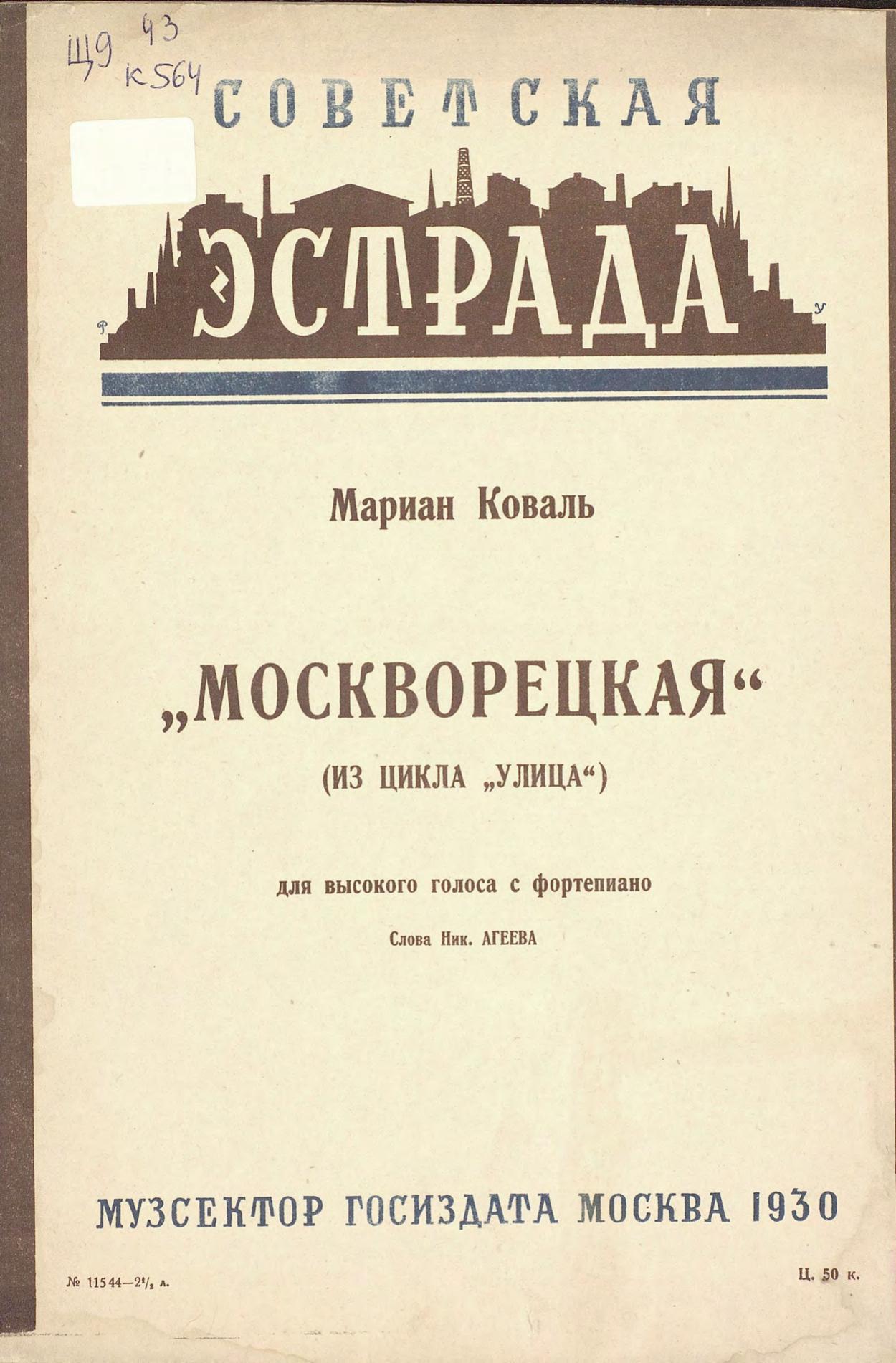 Перешедшие в общественное достояние материалы электронного фонда ЦГПБ им. В.В. Маяковского. Сведения о издательстве или типографии: Госиздат, Музсектор. Место издания: Москва