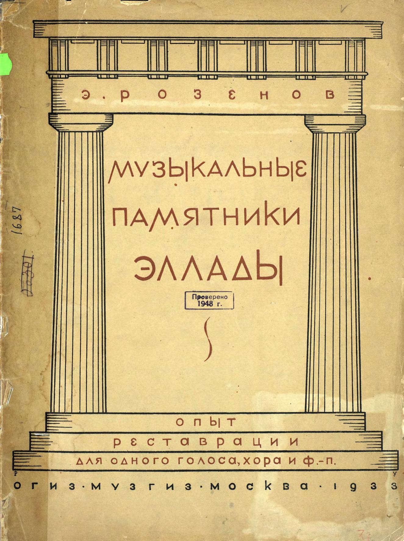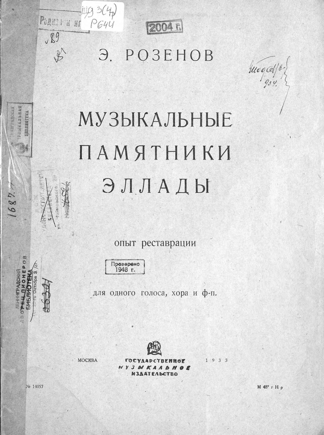 Перешедшие в общественное достояние материалы электронного фонда ЦГПБ им. В.В. Маяковского. Сведения о издательстве или типографии: Музгиз. Место издания: Москва