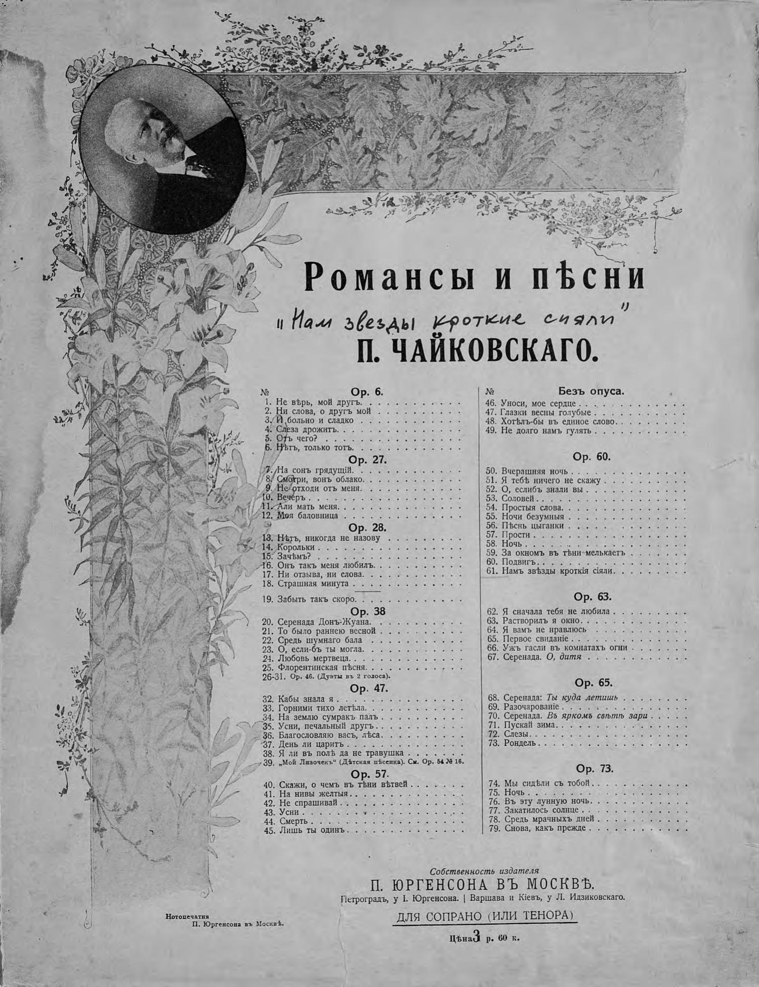 Перешедшие в общественное достояние материалы электронного фонда ЦГПБ им. В.В. Маяковского. Сведения о издательстве или типографии: П. Юргенсон. Место издания: Москва