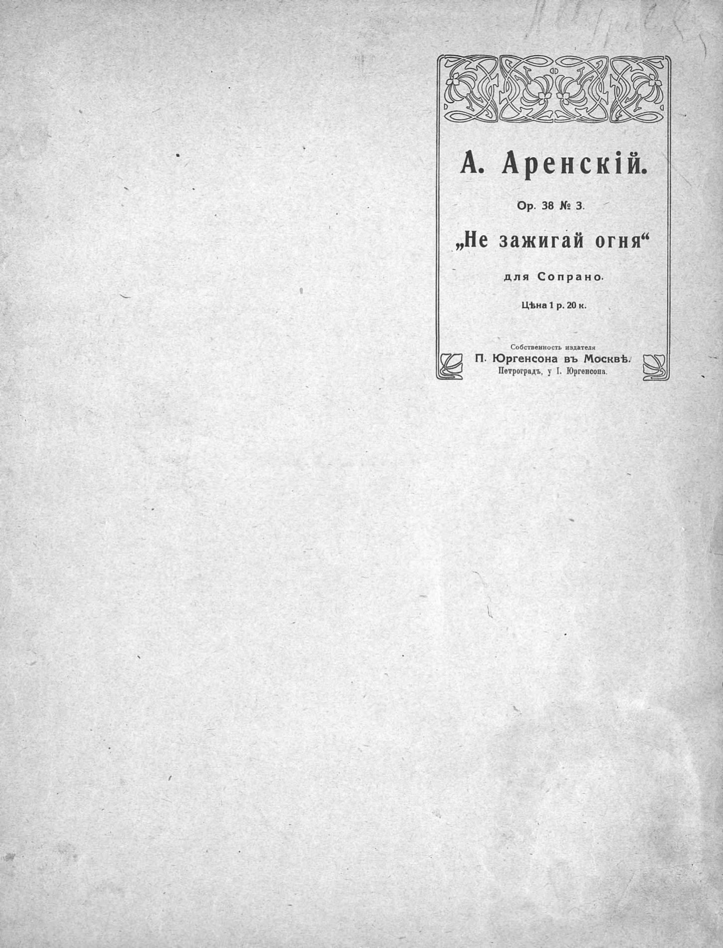 Перешедшие в общественное достояние материалы электронного фонда ЦГПБ им. В.В. Маяковского. Сведения о издательстве или типографии: П. Юргенсон. Место издания: Москва